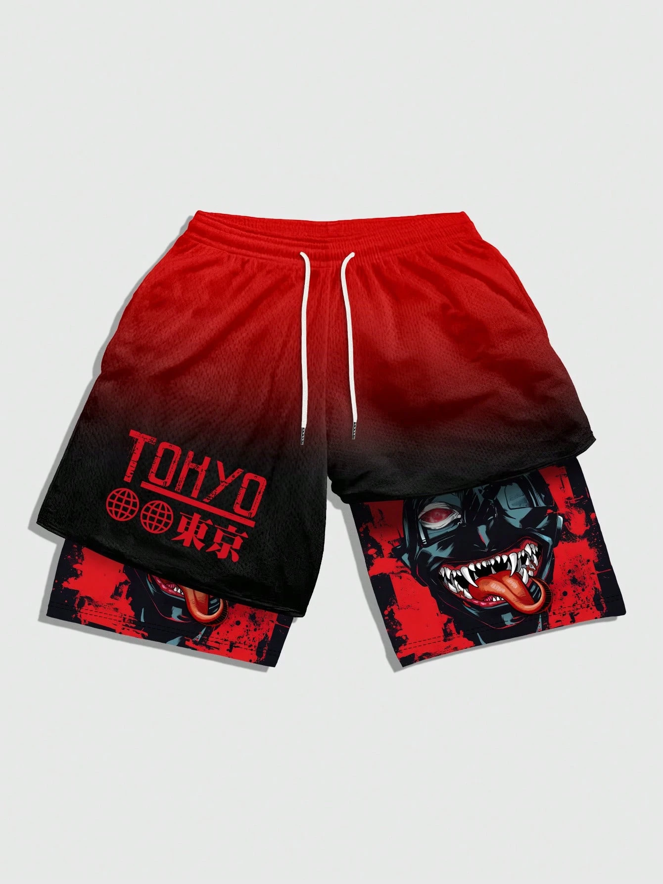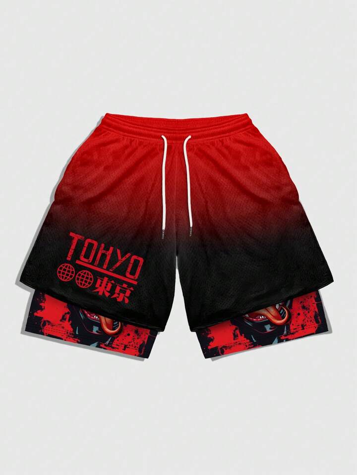 Anime Pantalones cortos informales con estampado de dibujos animados para hombres