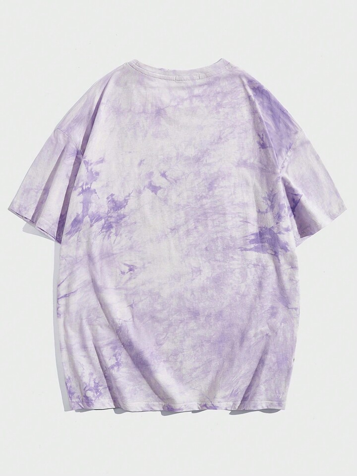 Anime Camiseta De Para Hombre, Con Tinte Anudado, Eslogan Y Gráfico De Fuego