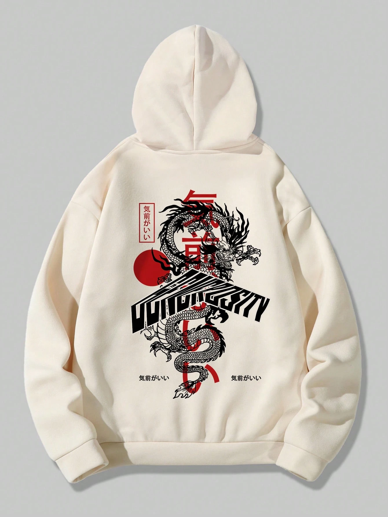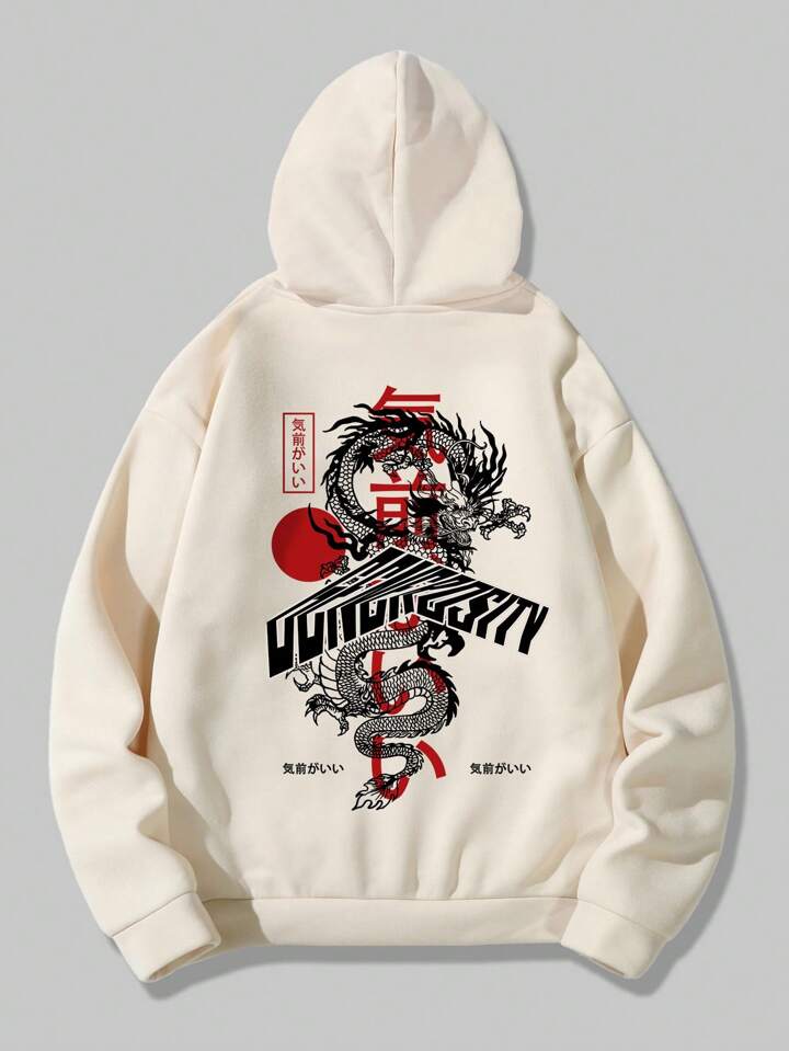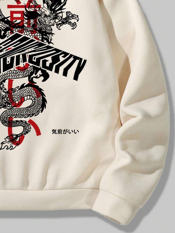 Anime Sudadera Con Capucha Térmica Con Cordón Para Hombre, Gráficos Con Dragón Y Letras