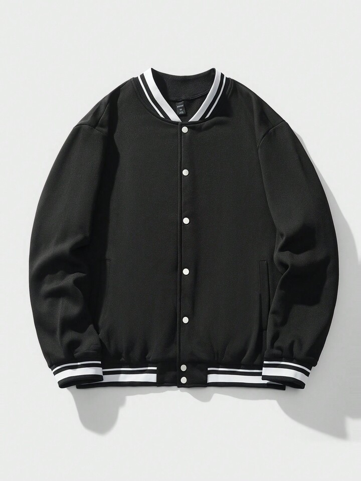 Anime Chaquetilla Varsity Para Hombres Con Letras Y Gráficos Japoneses Y Ribete Con Rayas