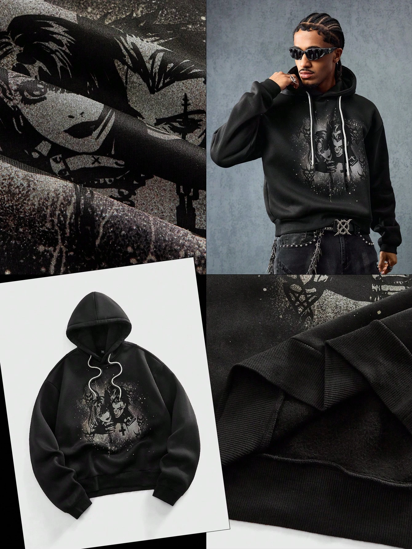 Anime Sudadera con capucha gótica de moda con estampado temático oscuro para hombre, parte superior de manga larga