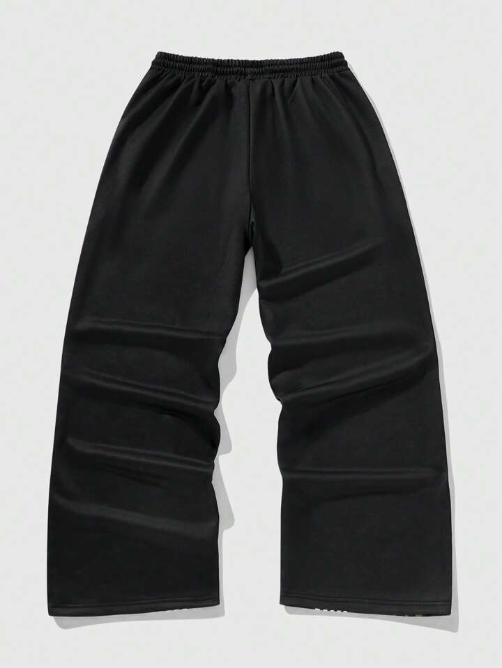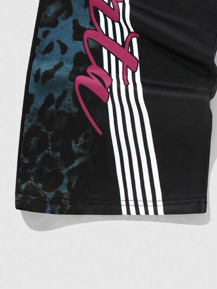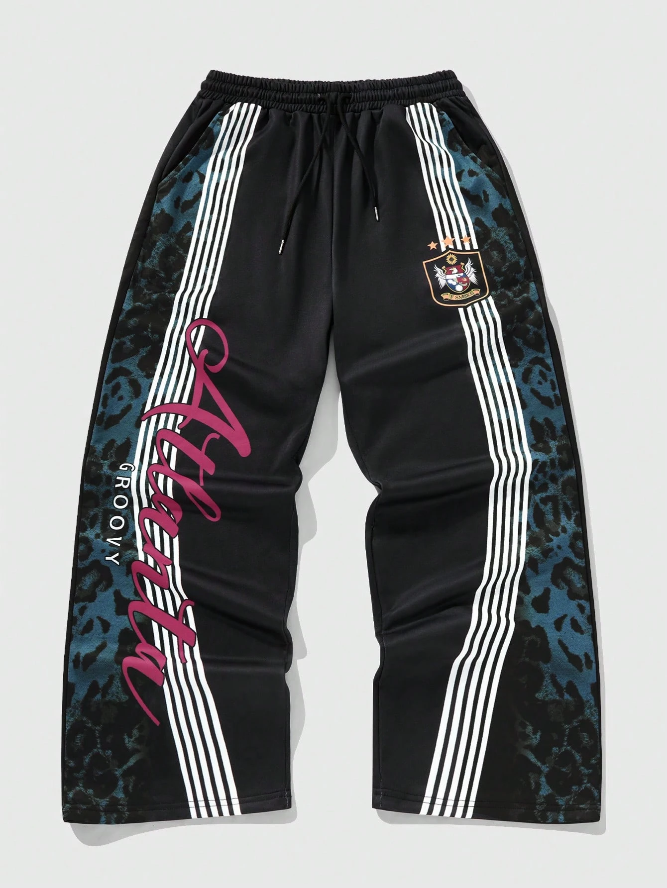 Anime Pantalones de chándal sueltos con cordón en la cintura y estampado de letras y leopardo para hombre