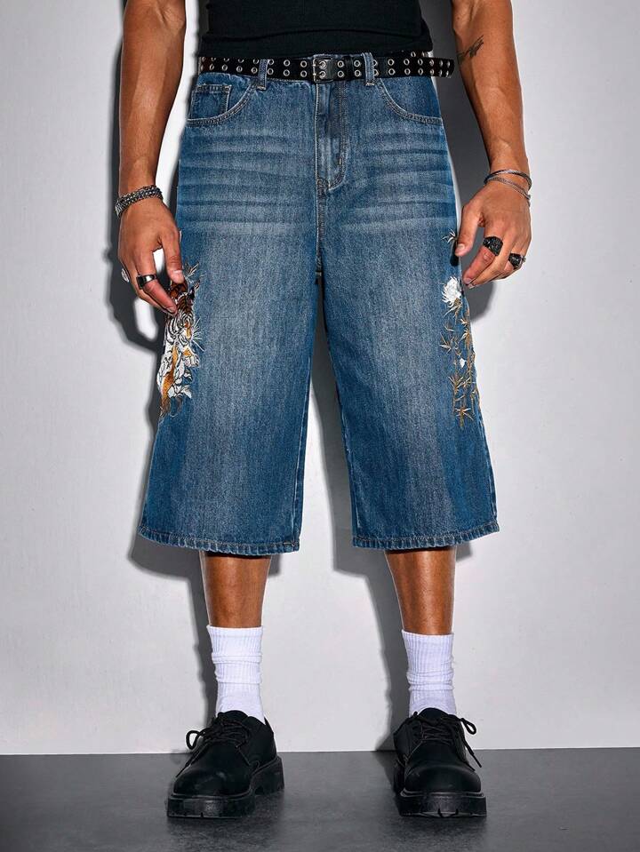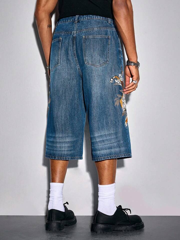 Anime Jeans de denim con bordado refinado de tigre para hombre
