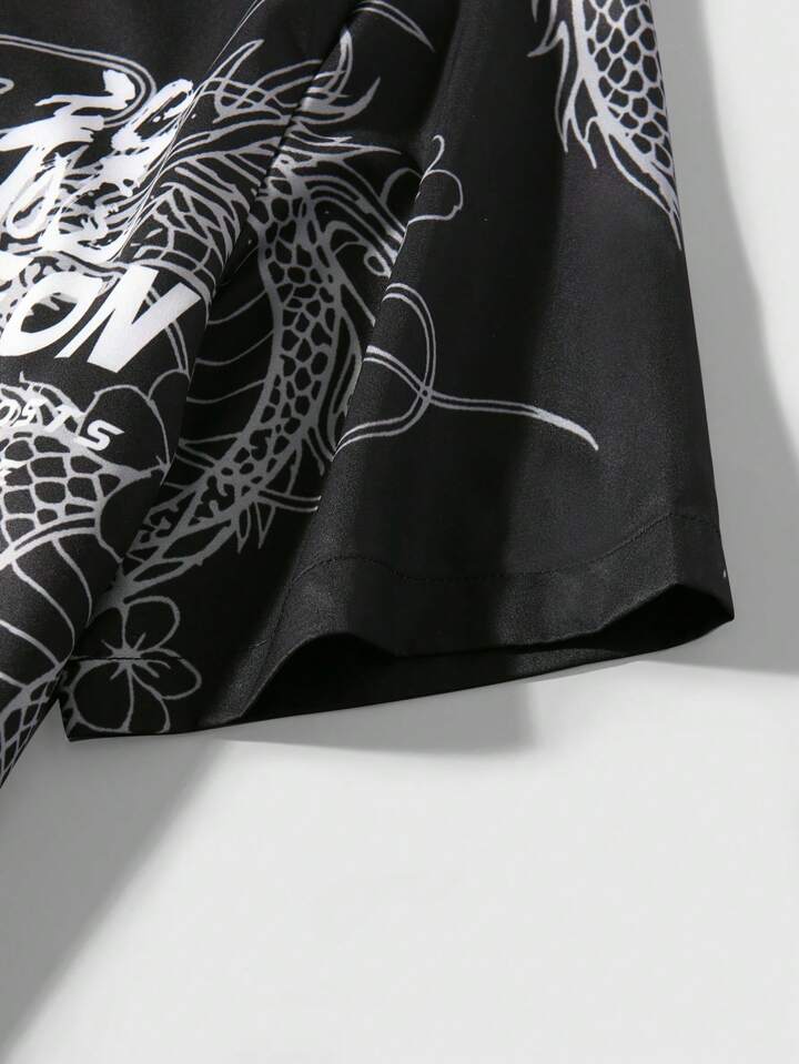 Anime Camisa De Manga Corta Para Hombre Con Estampado De Dragón