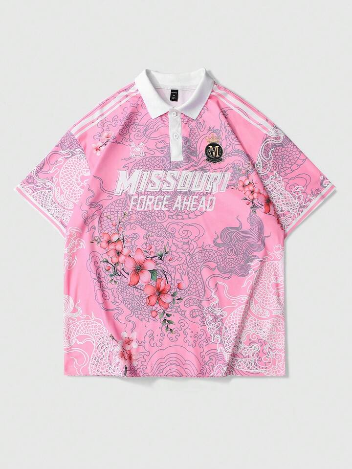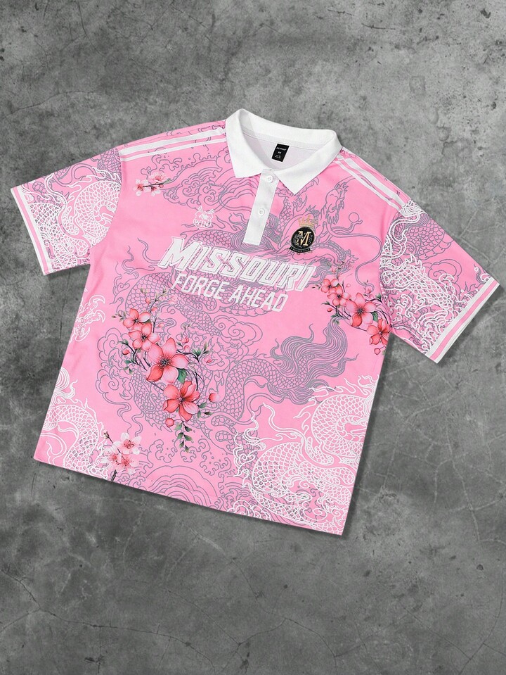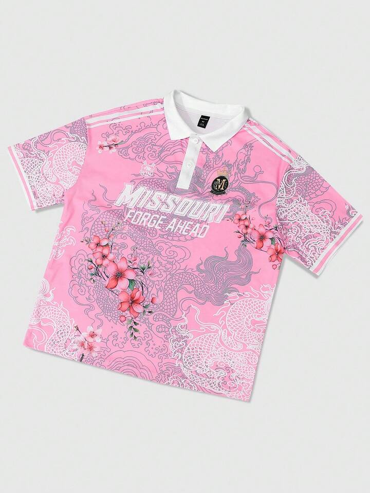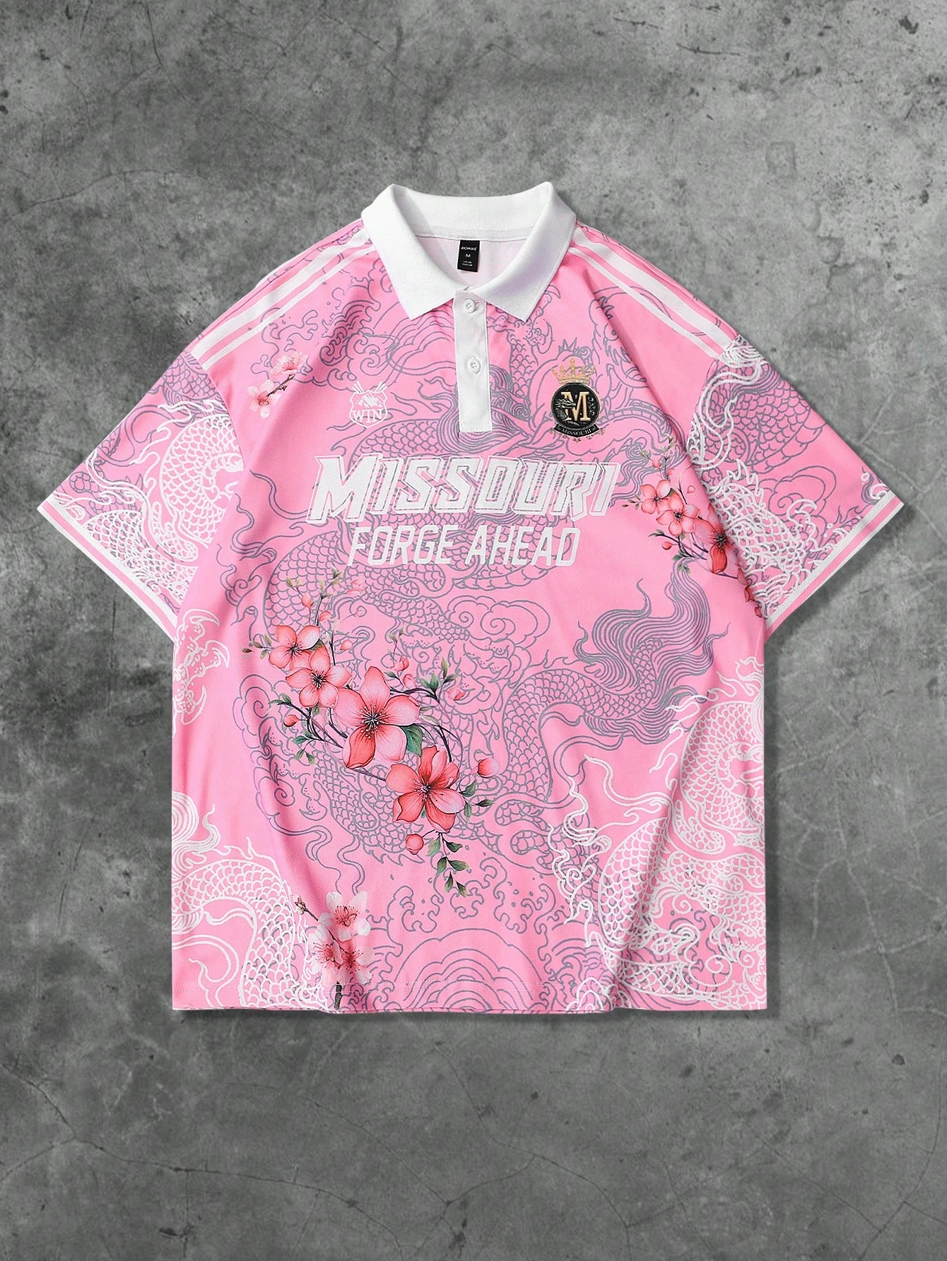 Anime Polo de hombre con estampado gráfico de calle, adecuado para uso diario, primavera/verano