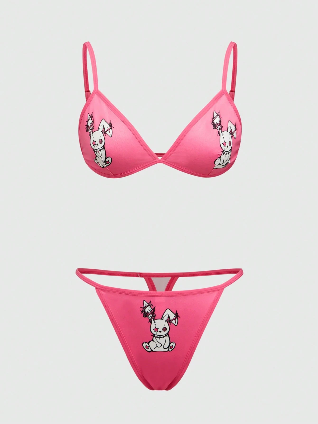 Anime Conjunto de sujetador inalámbrico con estilo punk oscuro de conejo, para mujeres