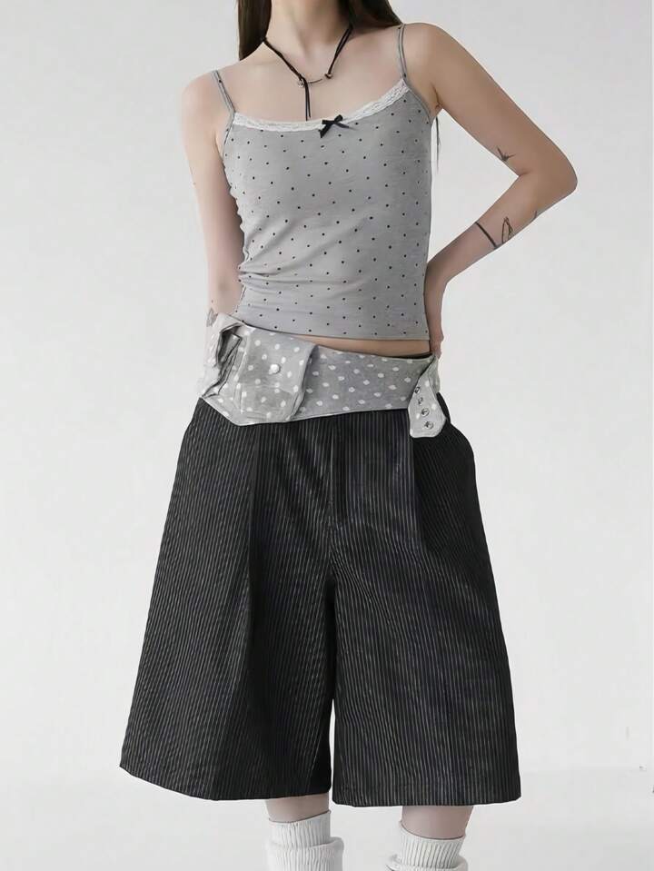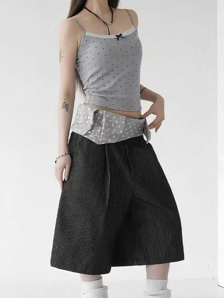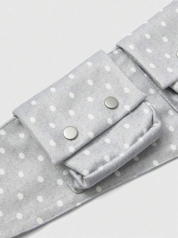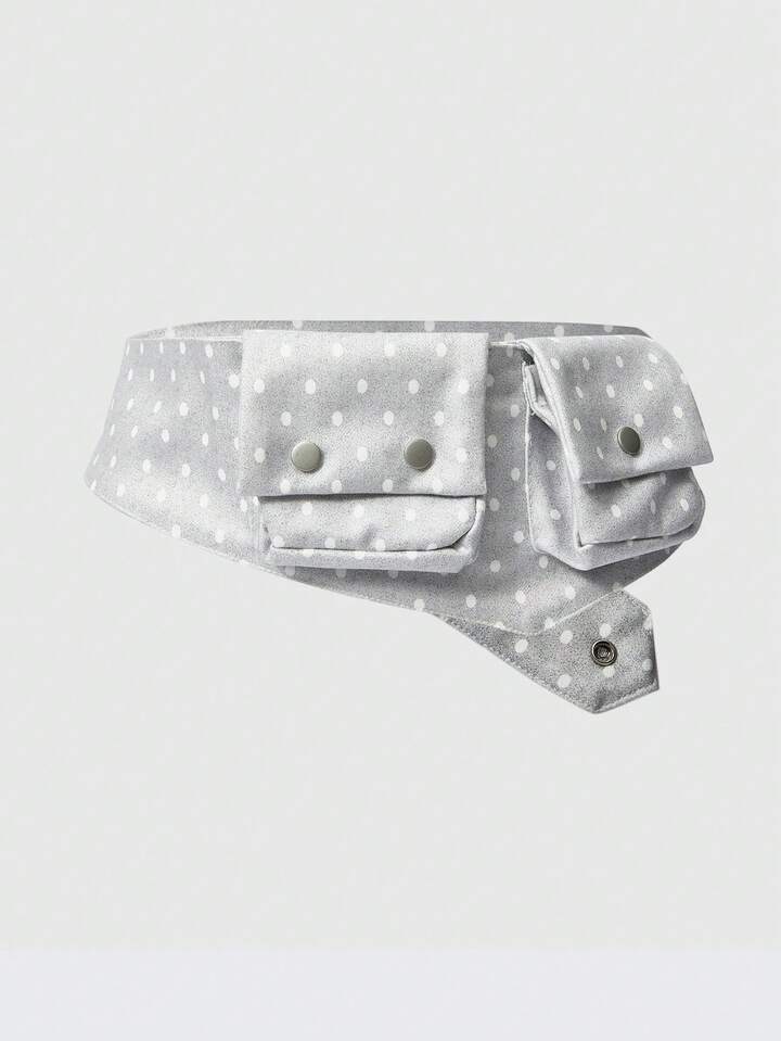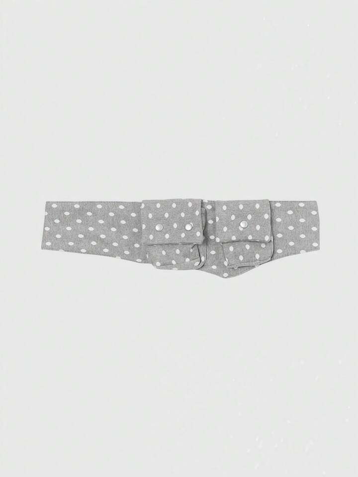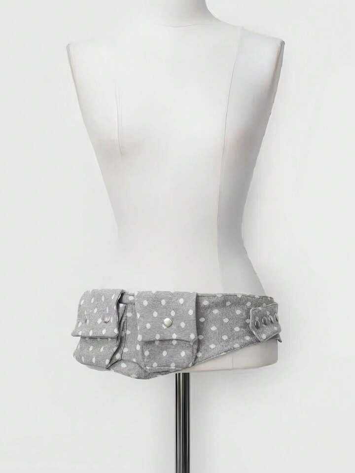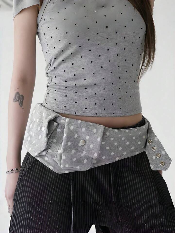 Anime Bolso de cintura con estampado de lunares blanco y negro retro, con bolsillo y correa ajustable. Accesorio versátil y de moda para el transporte diario
