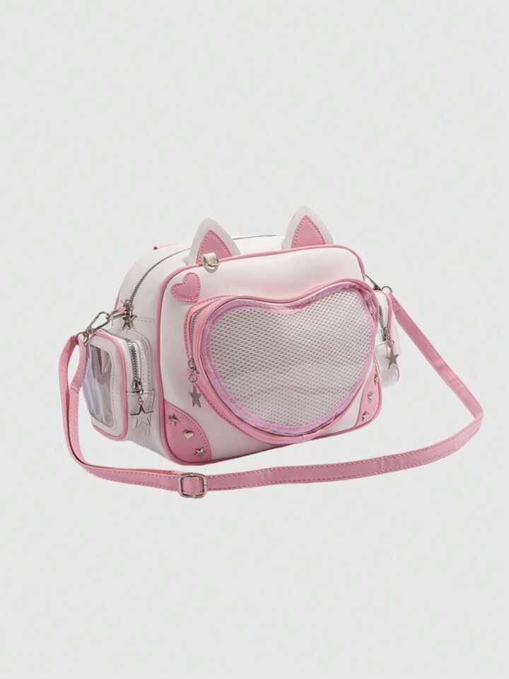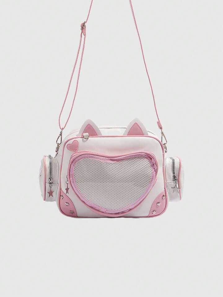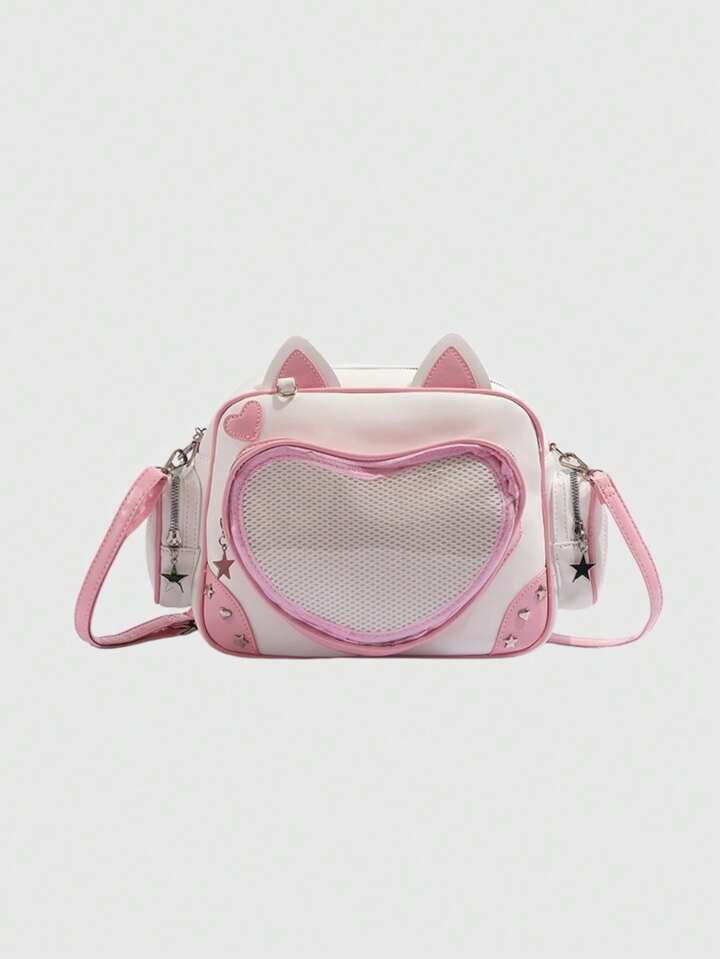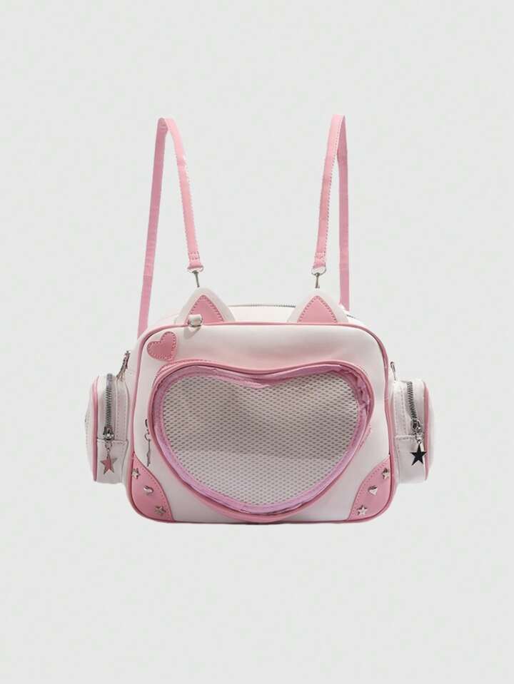 Mochila de contraste de color lindo personaje de anime Doraemon para mujeres, bolso de hombro con gran capacidad de estilo transparente multicapa Lolita de dibujos animados