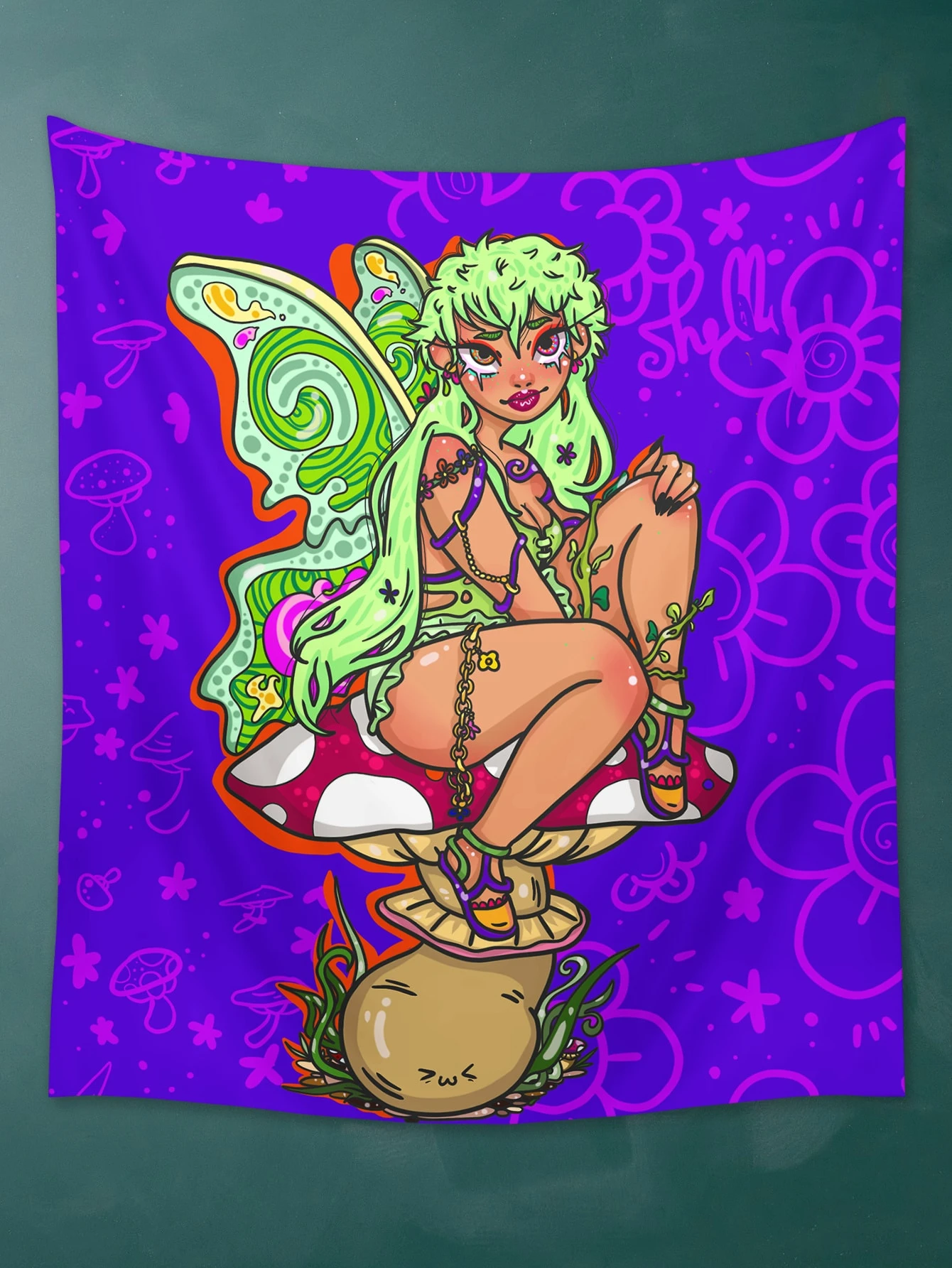 ArloShelleyQuartz Y2K Revival Tapiz con figura de dibujos animados & con estampado de seta