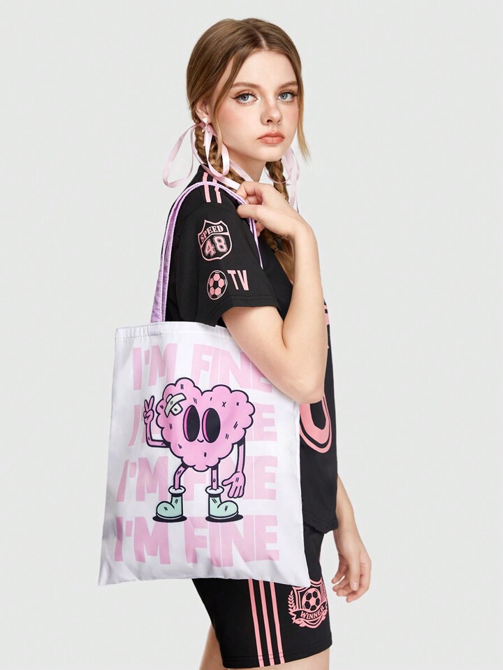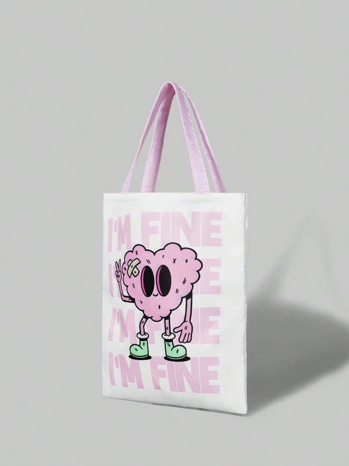 Bolso de tela con estampado de dibujos animados para mujer, estilo artístico