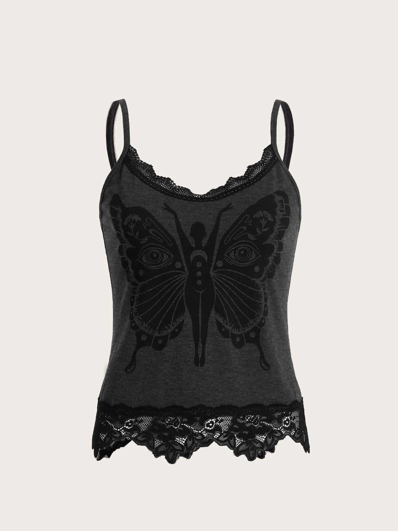 Ashley Baxter Top de tirantes con estampado de mariposa con encaje en contraste
