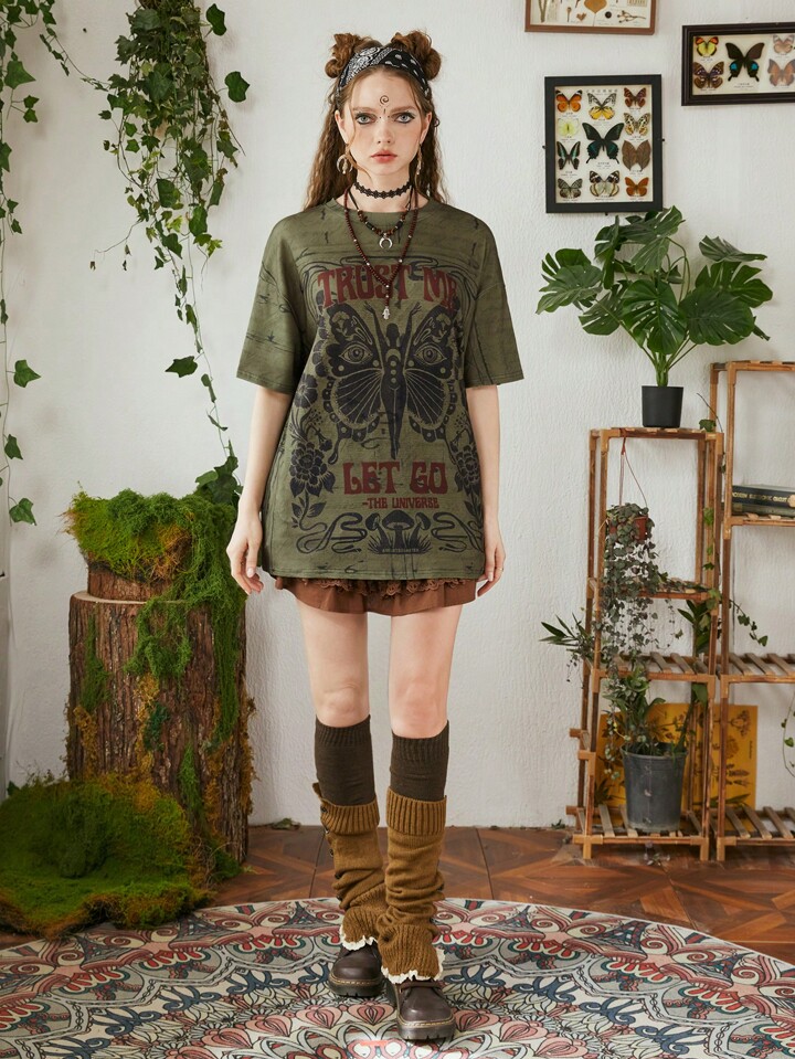 Ashley Baxter Camiseta de hombros caídos con estampado de mariposa