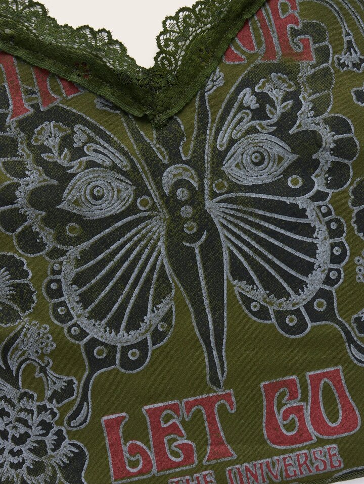 Ashley Baxter Cami corto con letra con estampado de mariposa sin Top de malla