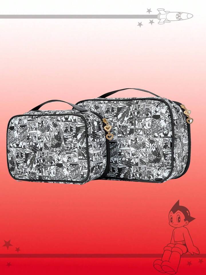 Astro Boy X ROMWE Bolsa de viaje portátil de gran capacidad para artículos de tocador y maquillaje con diseño gráfico de dibujos animados, bolsa transparente