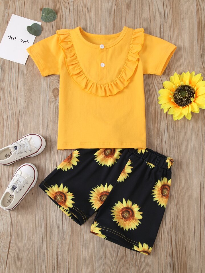 Camiseta con fruncido con shorts de girasol