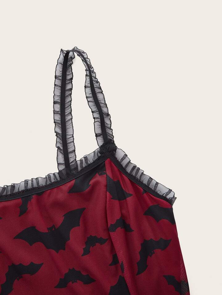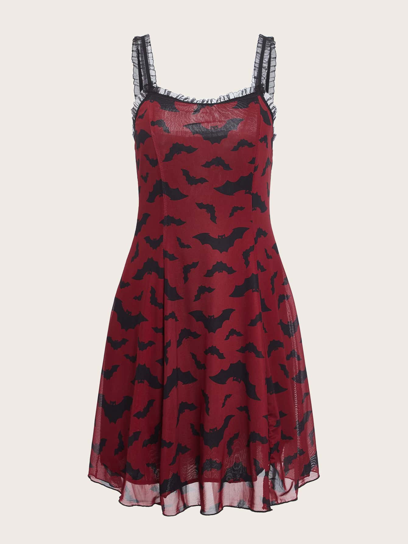 Vestido de tirantes con estampado de murciélago con encaje en contraste