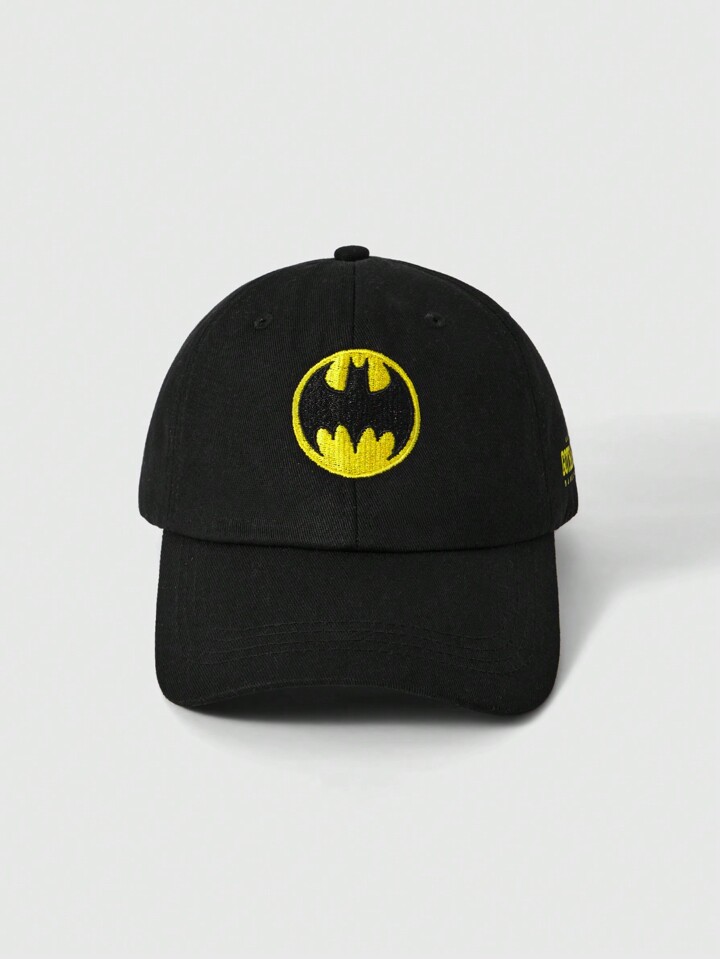Batman X ROMWE Gorra de béisbol deportiva elegante con logotipo de murciélago bordado y gráfico de letras