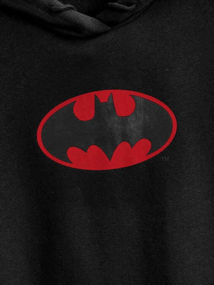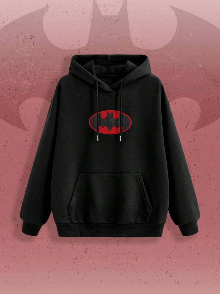 Batman X ROMWE Sudadera con capucha informal de mujer estampado de murciélago con cordón, otoño