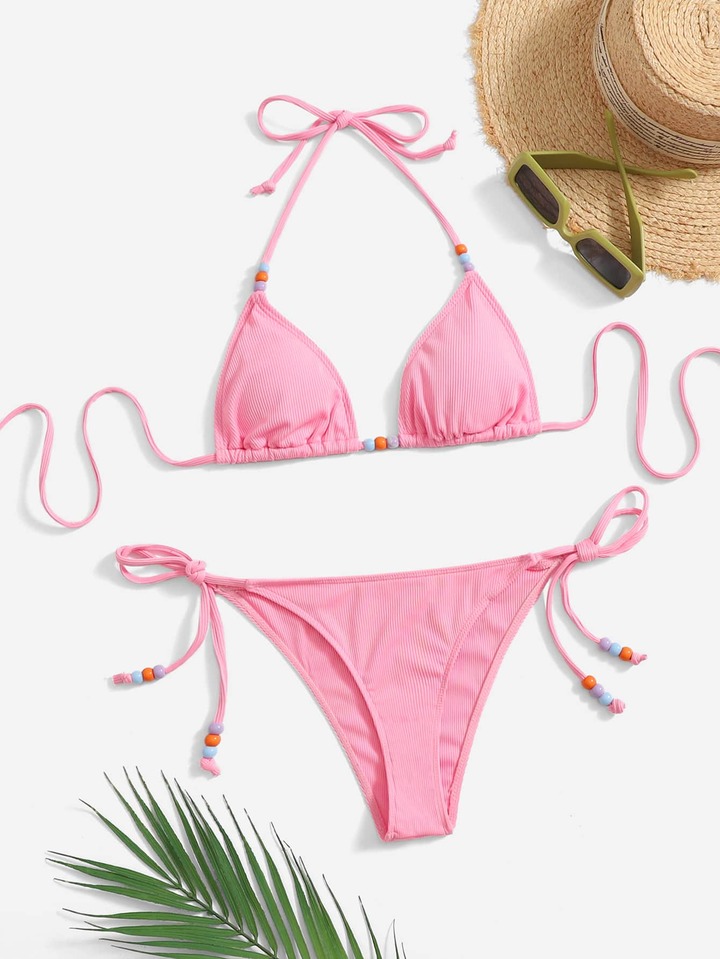 Bikini lateral con tiras de cuentas para la playa de verano