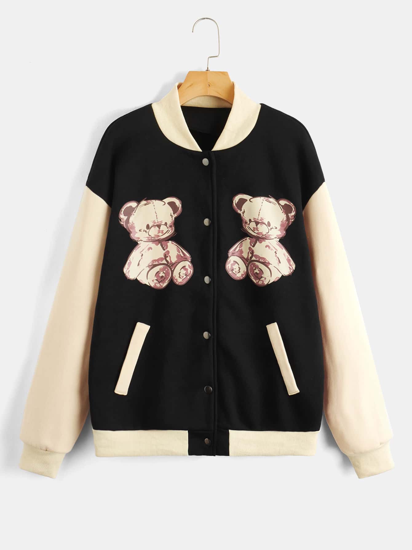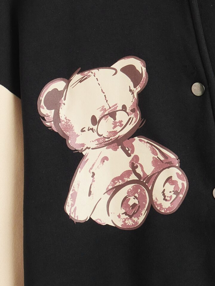 Cazadora tipo bomber con estampado de oso de hombros caídos
