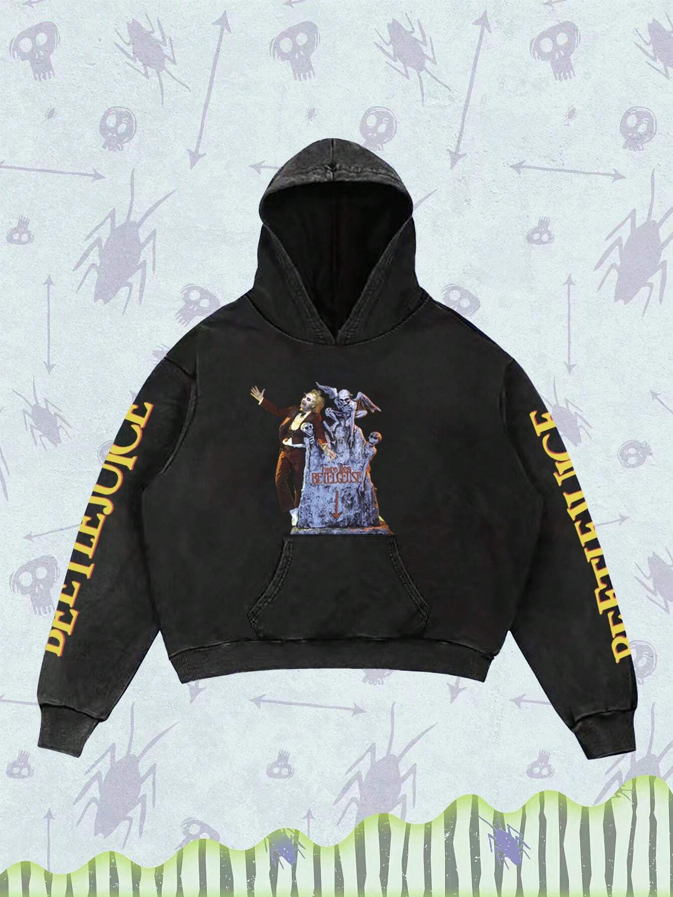 Beetlejuice | ROMWE Sudadera con capucha informal, holgada, con gráfico y estampado de letras, hombros caídos, bolsillo canguro, para primavera y otoño, para hombre