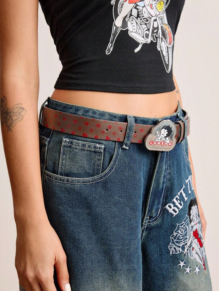 Betty Boop | ROMWE 1 pieza Cinturón versátil y sexy con gráfico de figura de mujer de moda