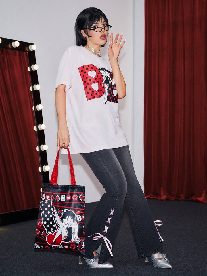 Betty Boop | ROMWE Bolsa de mano para mujer con letras y personajes de Anime impresos