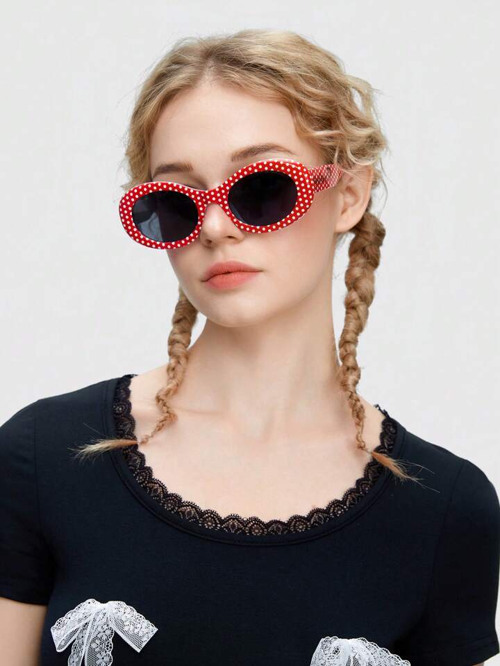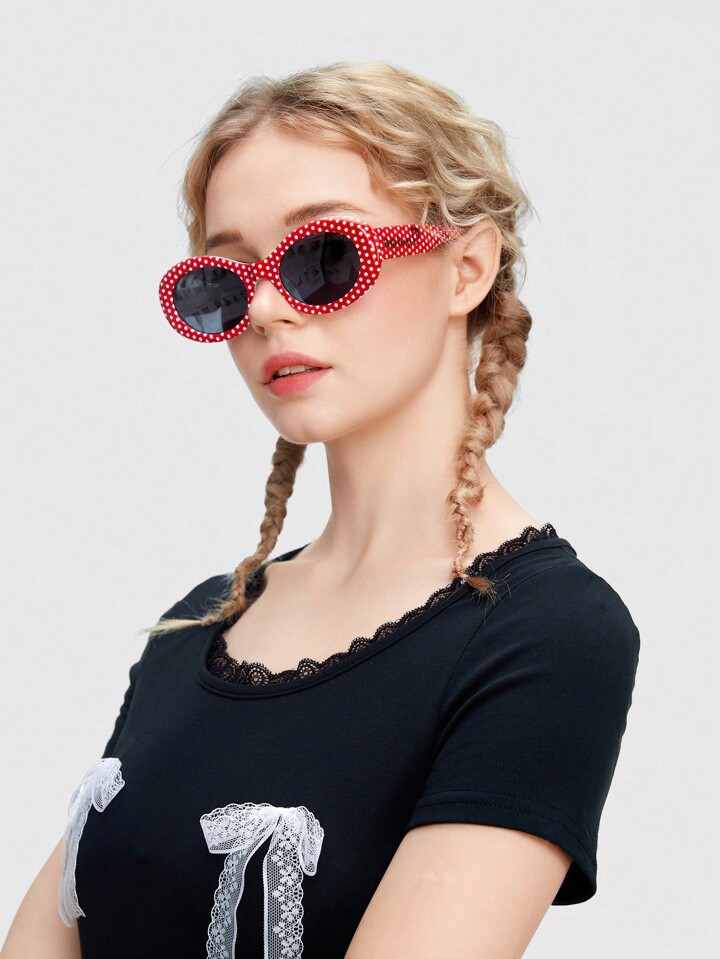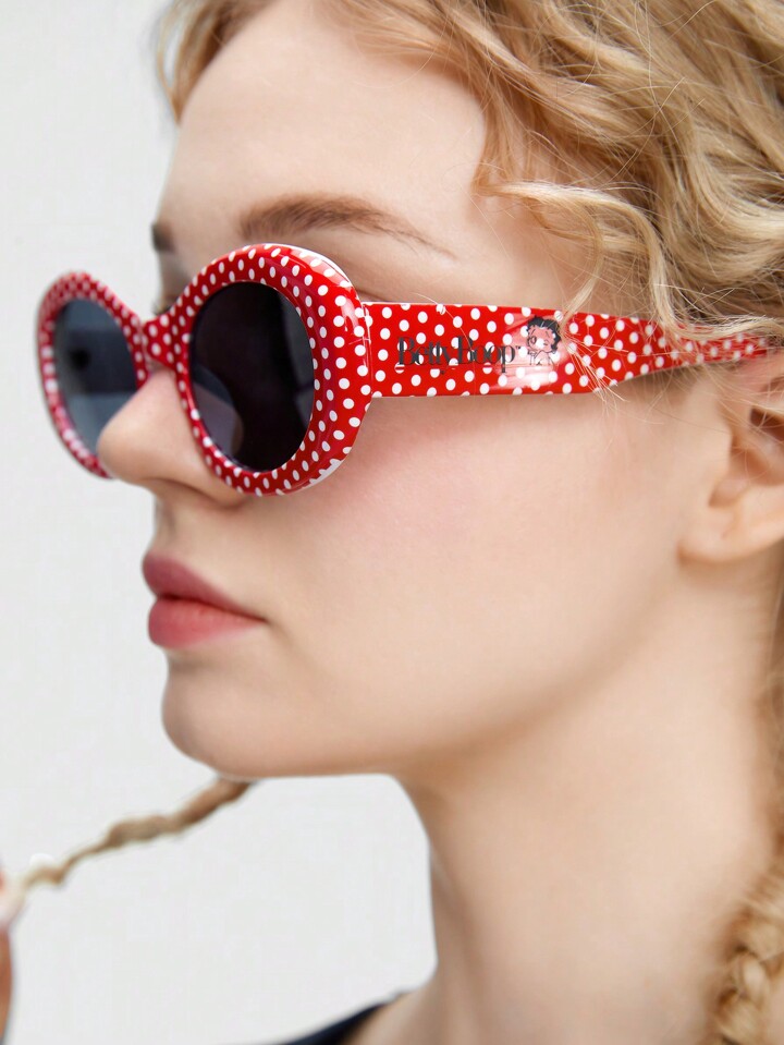 Betty Boop | ROMWE Gafas de moda para mujeres con estampado de personajes de dibujos animados y lunares