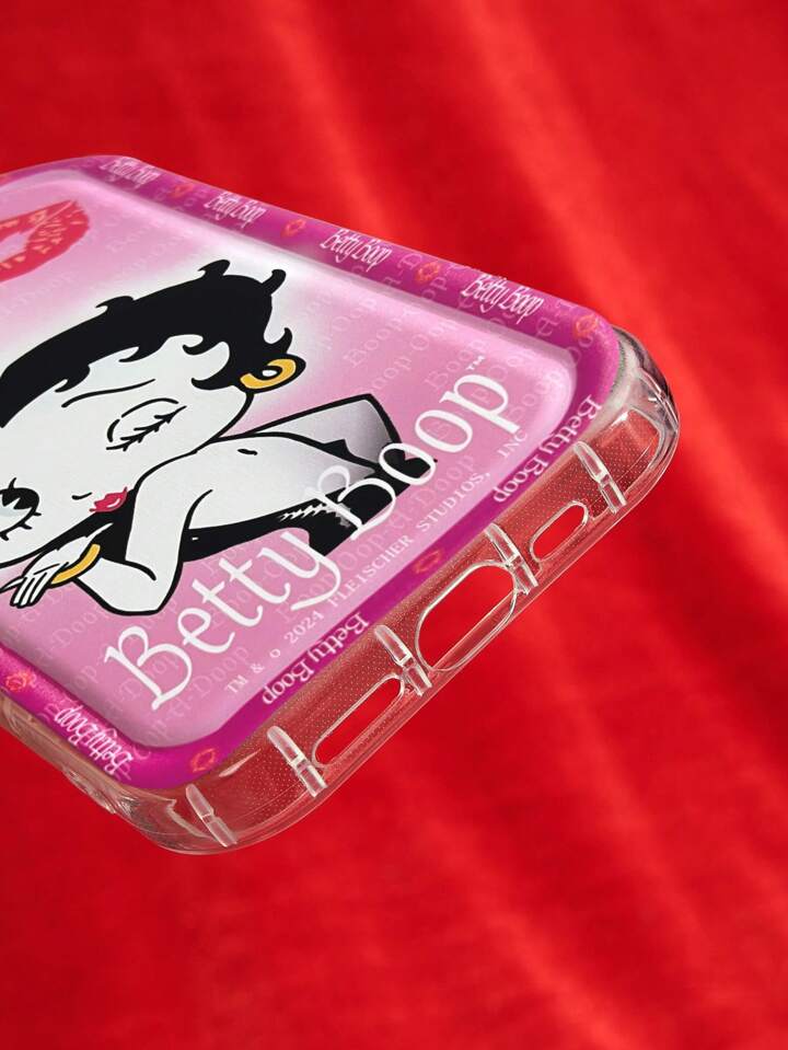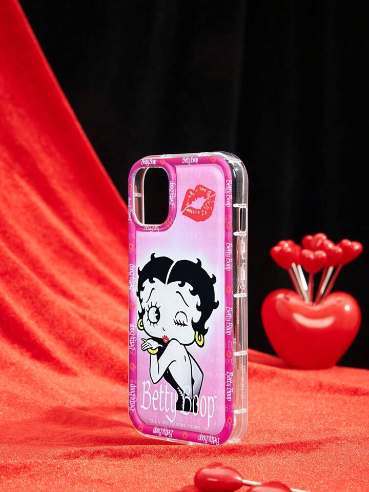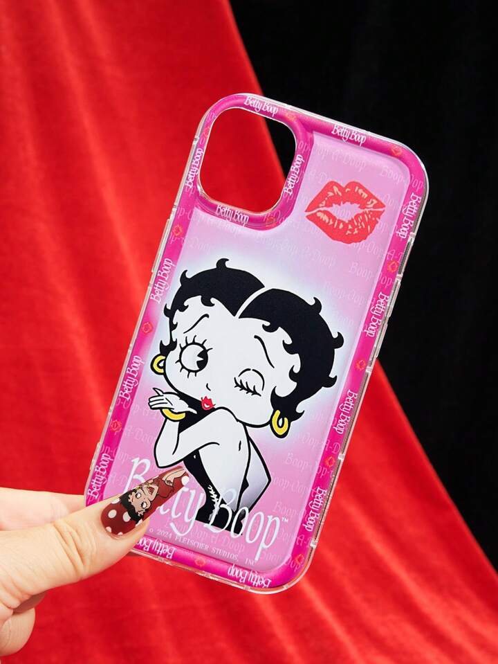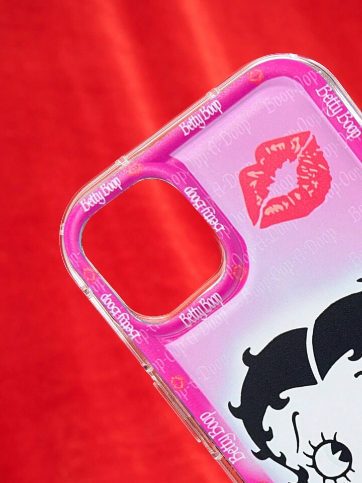 Betty Boop | ROMWE Carcasa de teléfono transparente pintada de negro con diseño personalizado de labios rosados y degradado estilo caricatura, compatible con la serie de iPhone 12 13 14