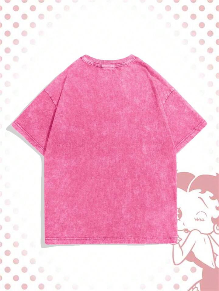 Betty Boop | ROMWE Camiseta suelta de manga caída con estampado de dibujos animados y letras casual para hombre, verano, escuela