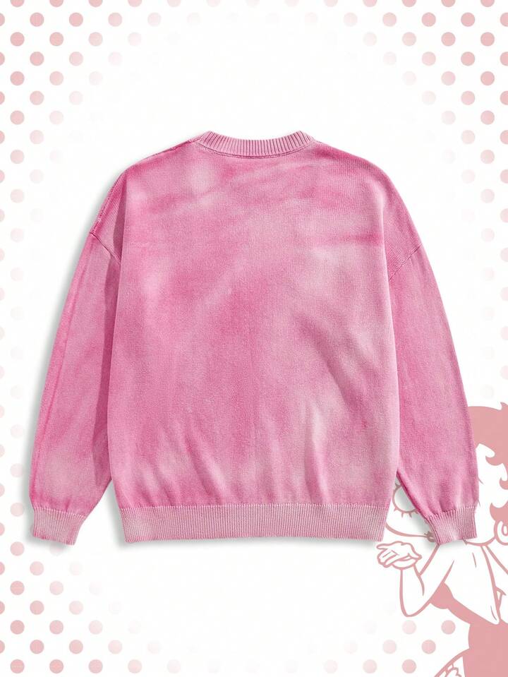 Betty Boop | ROMWE Suéter casual holgado con lavado y estampado de dibujos animados de hombros caídos para hombres