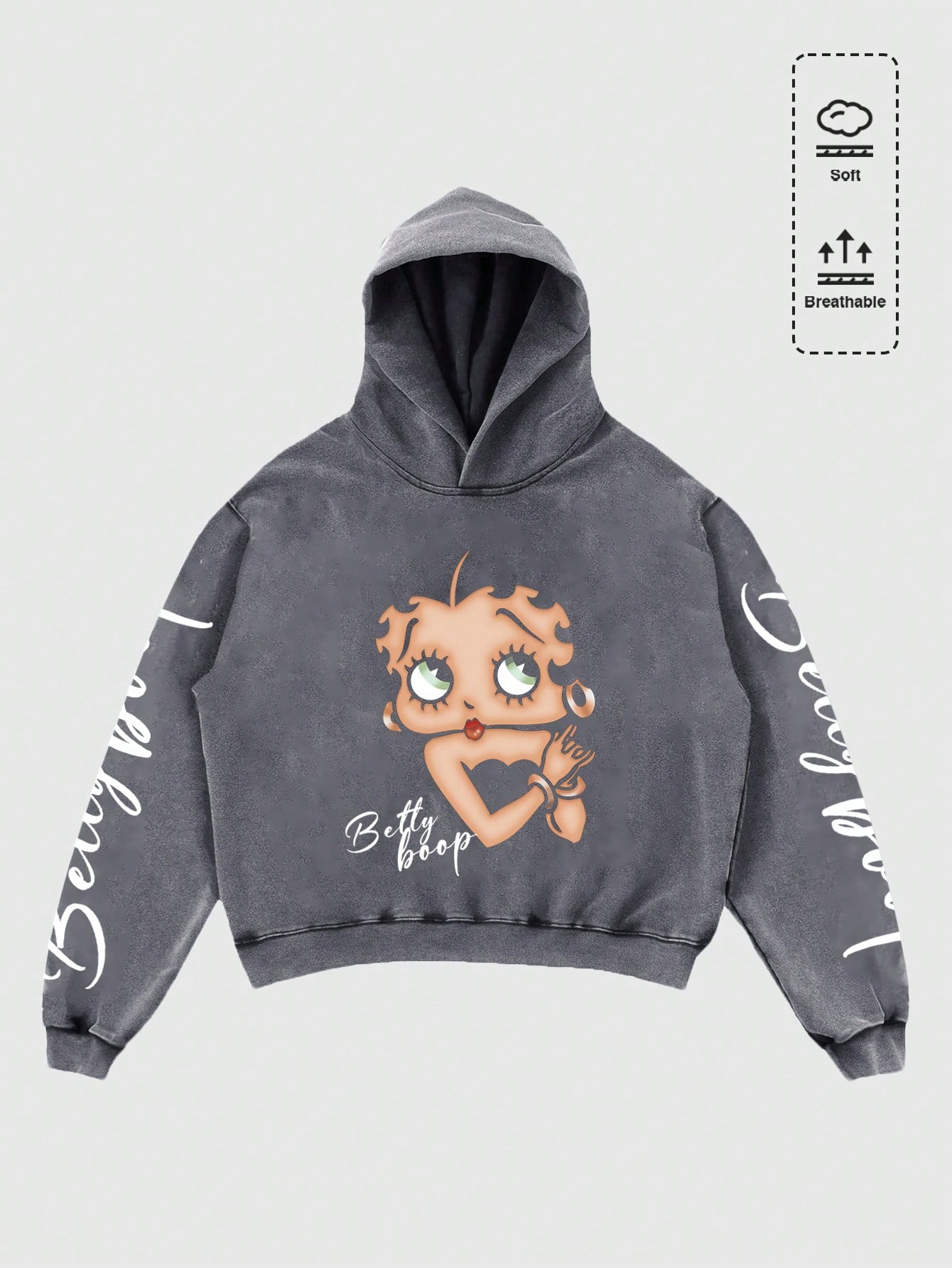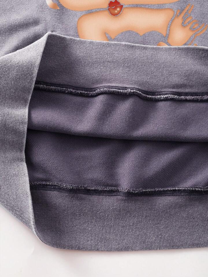 Betty Boop | ROMWE Sudadera con capucha con gráfico de figura lavada para hombres, corte holgado y acortado