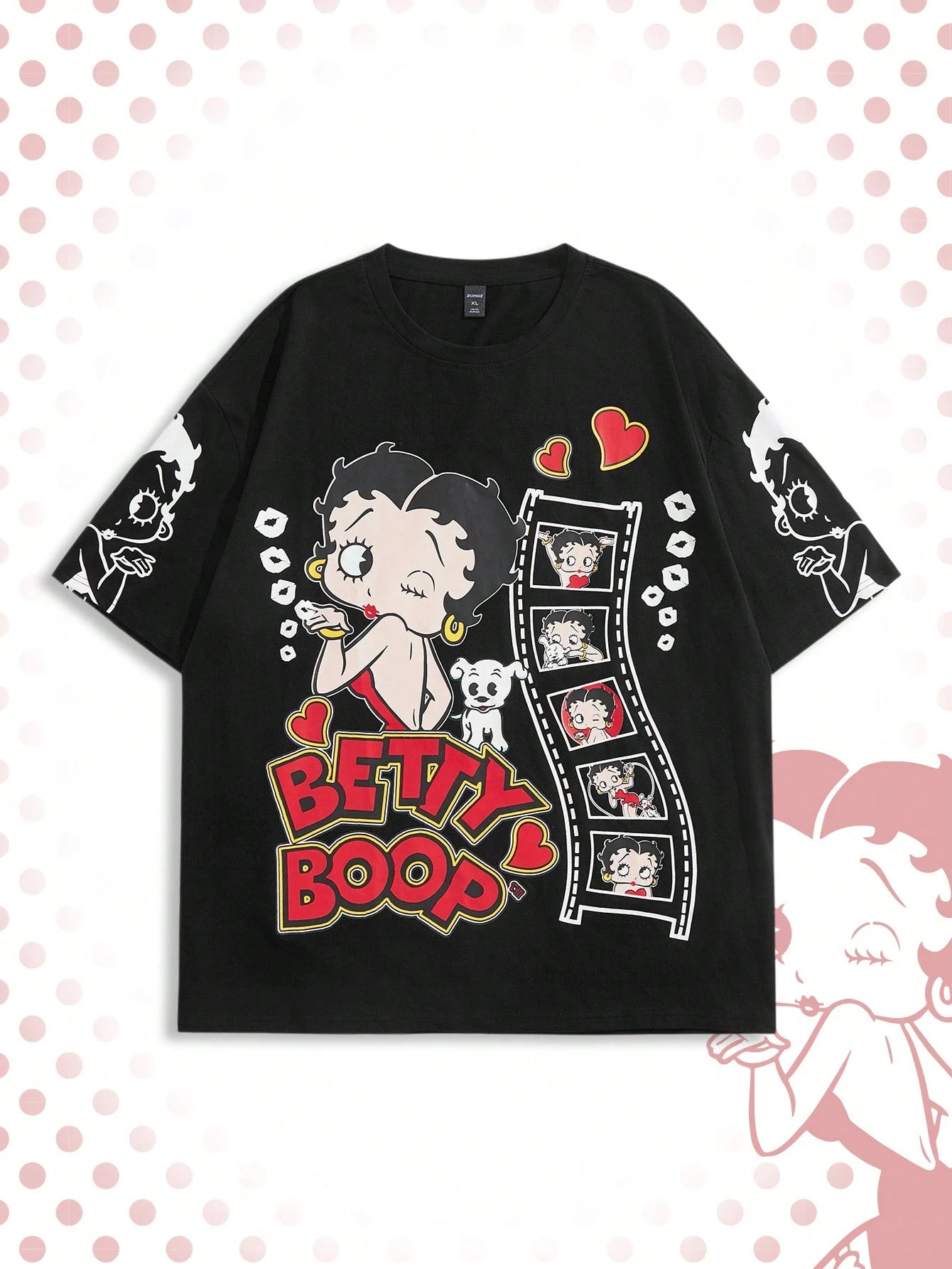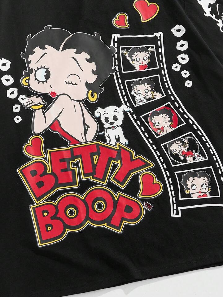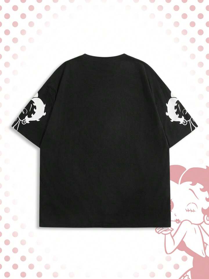 Betty Boop | ROMWE Camiseta de manga corta con cuello redondo, estampado de letras y dibujos animados, estilo de los años 2000 para hombres