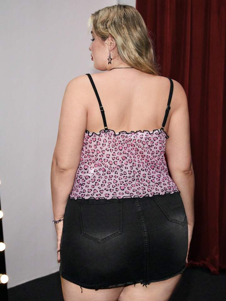 Betty Boop | ROMWE Top de camisola de talla grande con bloque de color de impresión de leopardo de corazón adornado con pedrería de personaje de dibujos animados para verano
