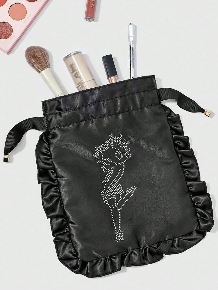 Betty Boop | ROMWE Bolsa de viaje organizadora con cordón y tachuelas, bolsa de maquillaje, regalo
