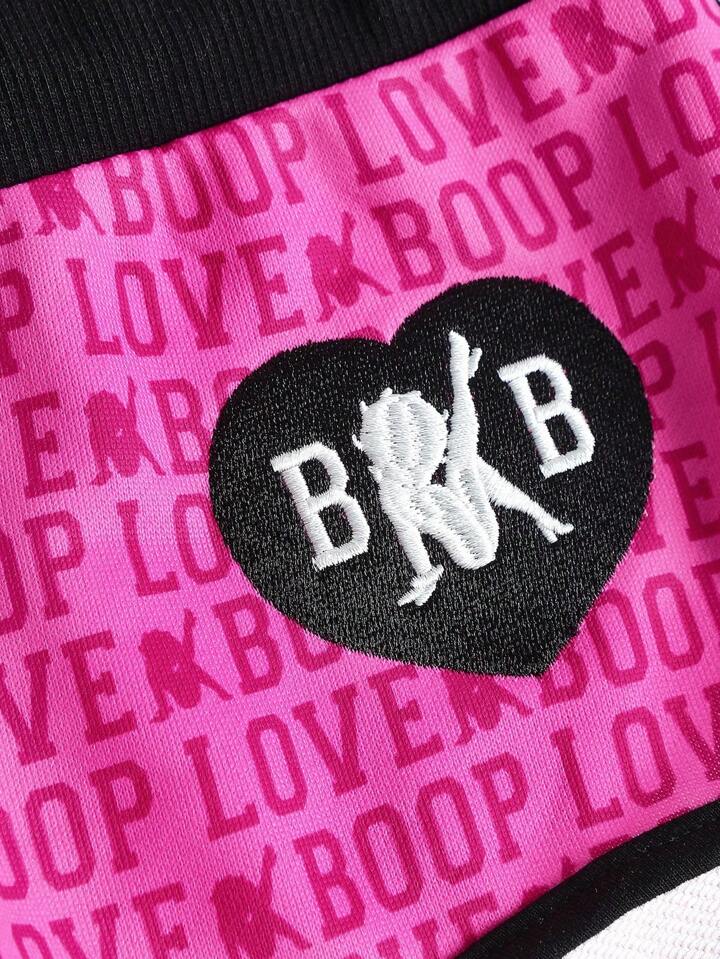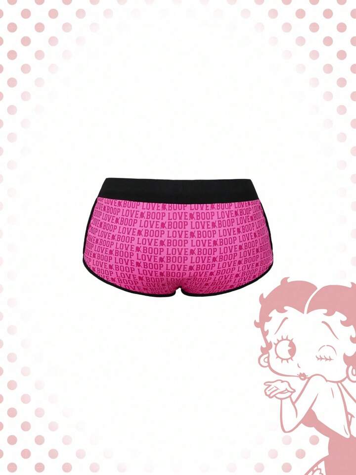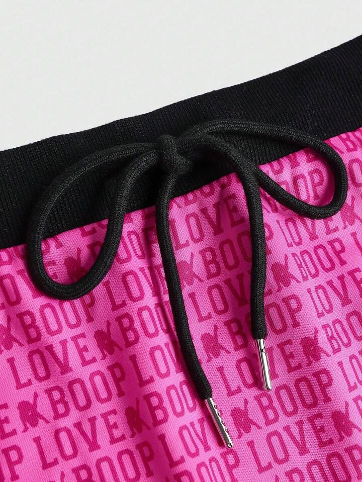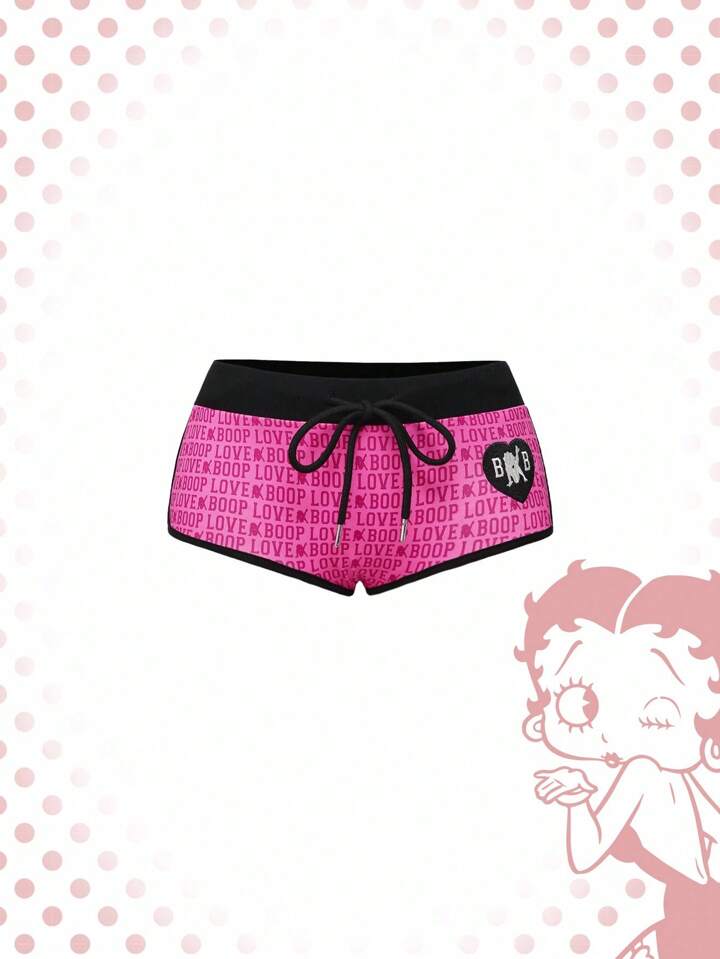 Betty Boop | ROMWE Shorts de mujer con diseño de bloque de color, borde bordado y gráfico de letra "Hotty Girl" de talle bajo estilo Y2K
