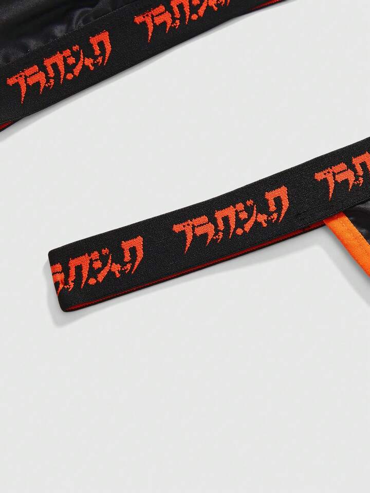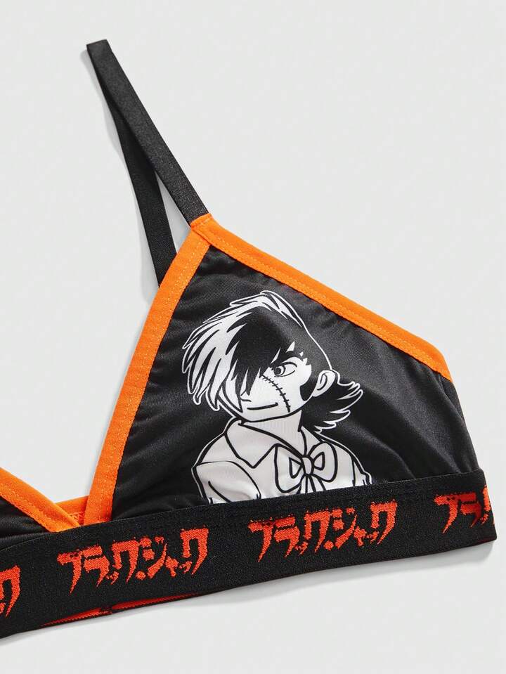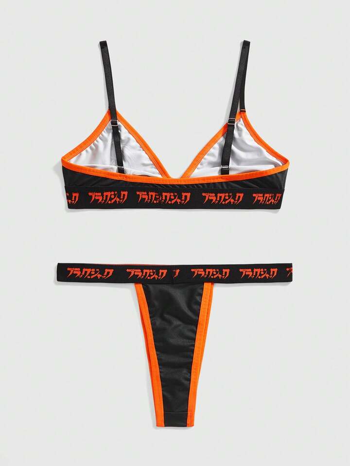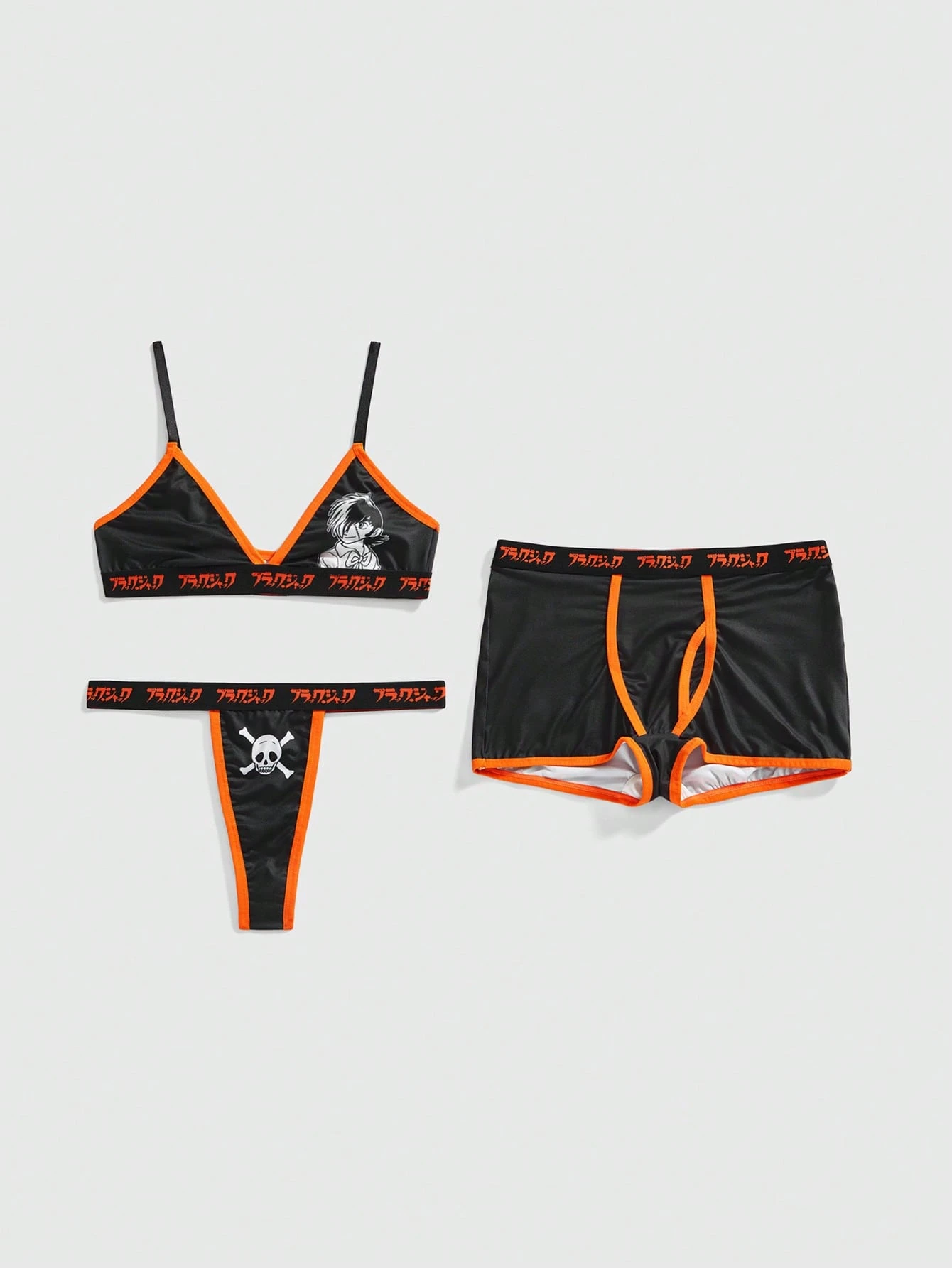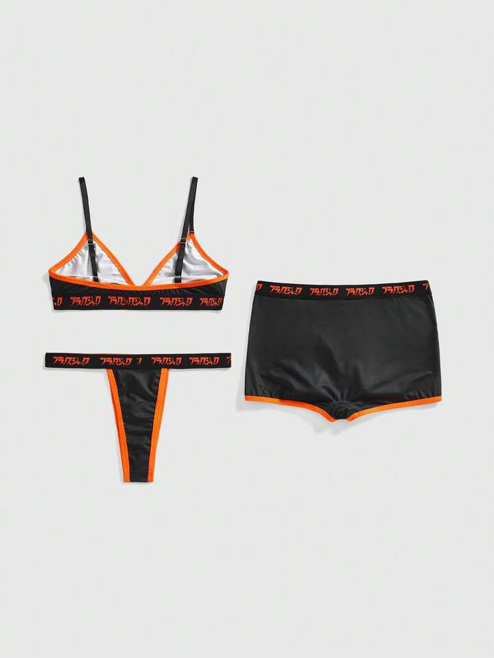 Black Jack X ROMWE Conjunto de lencería de sujetador, tanga y pantalón corto con estampado de cartas de póker en negro