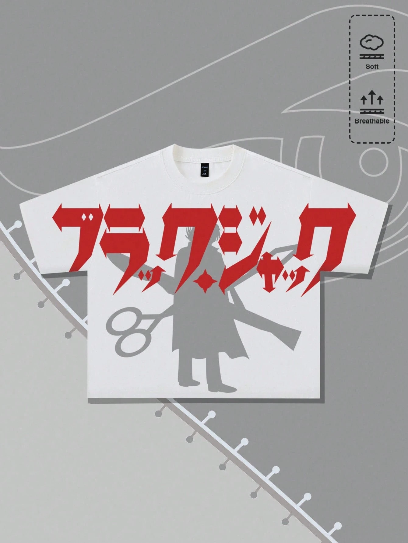 Black Jack X ROMWE Camiseta blanca de corte holgado y casual para hombre con estampados de personajes japoneses y anime, para verano