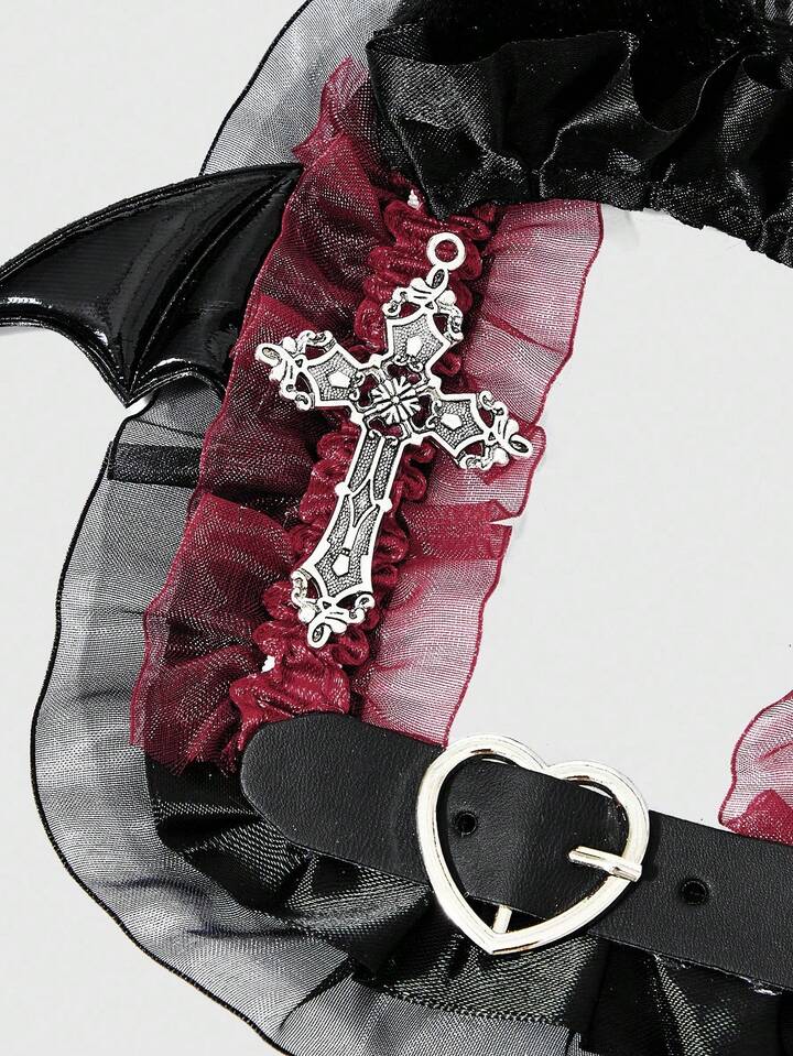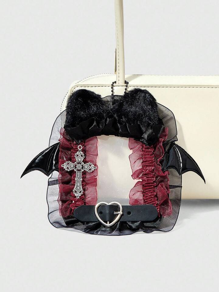 Accesorio de bolso con alas de murciélago de encaje negro, soporte multiusos de estilo anime de moda casual para tarjetas de identificación, tarjetas de crédito, fotos, Halloween