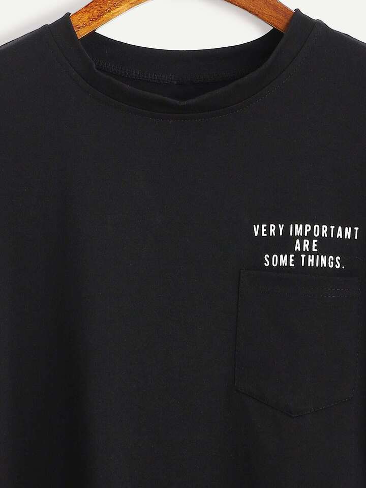camiseta con estampado de letras - negro