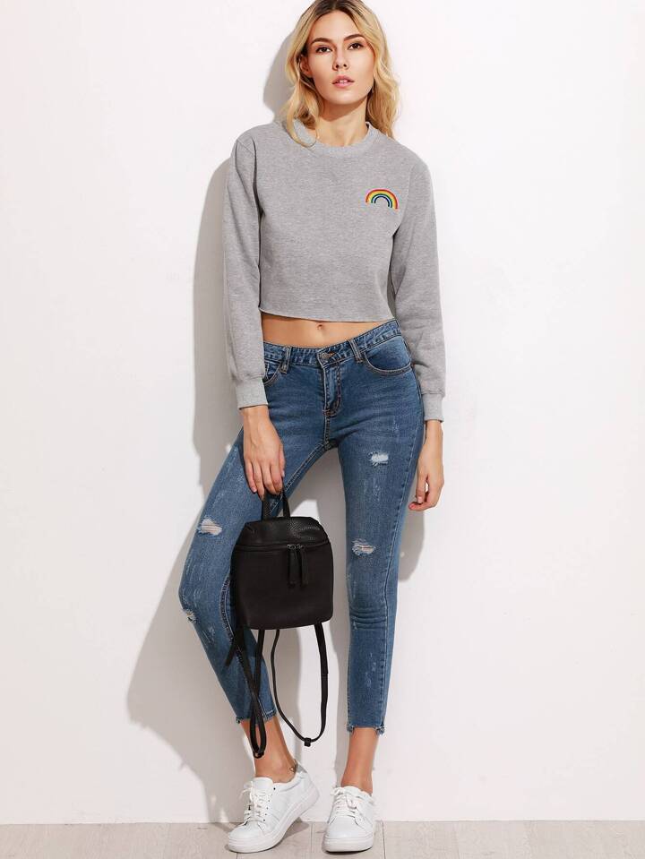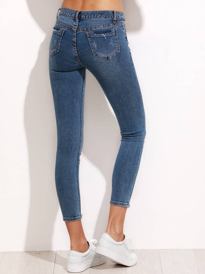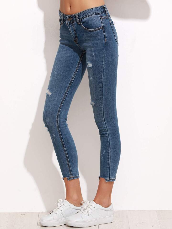 Vaqueros rotos asimétrico desflecado skinny - azul