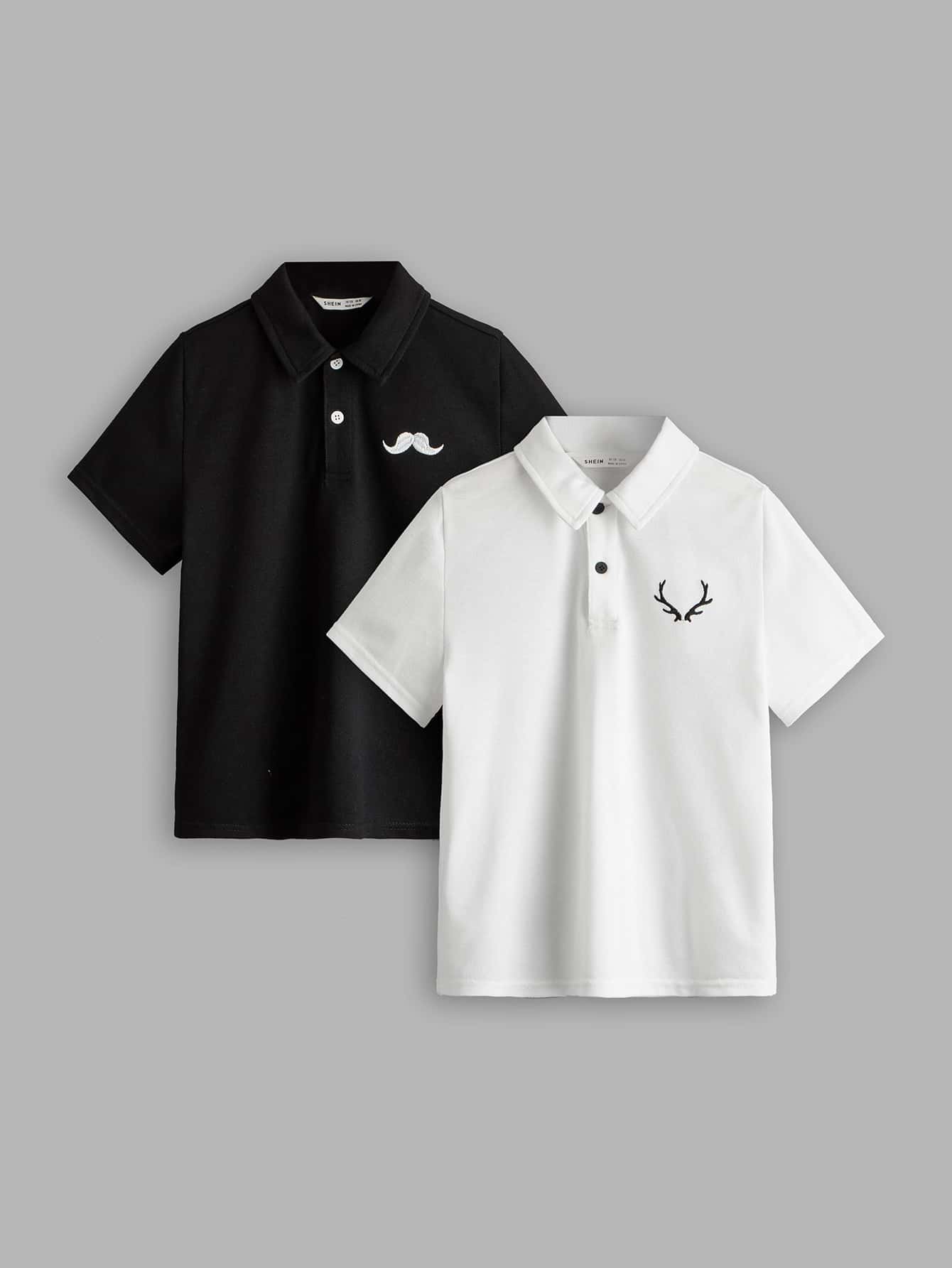 2 paquetes de camisa polo bordada para niños preadolescentes