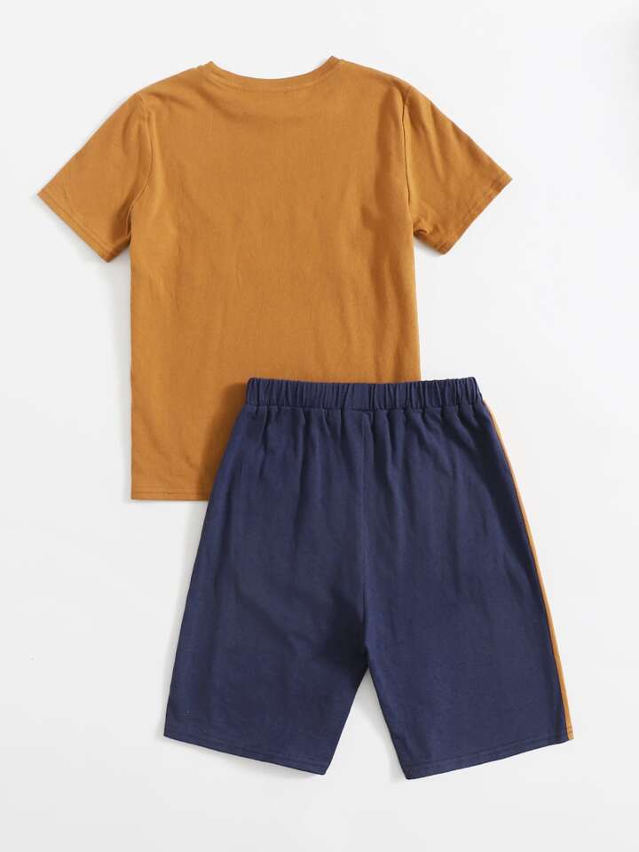Niños Top con estampado de letra de color combinado & Shorts con costura lateral en contraste