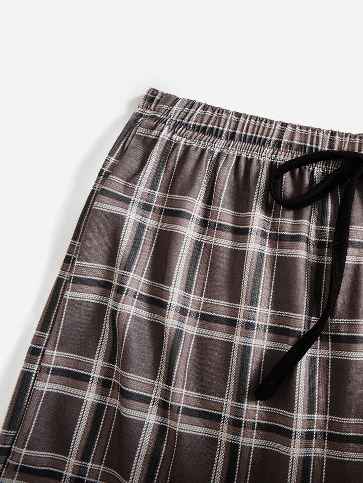 Brooksart Conjunto de pijama con estampado de esqueleto de cuadros unido en contraste