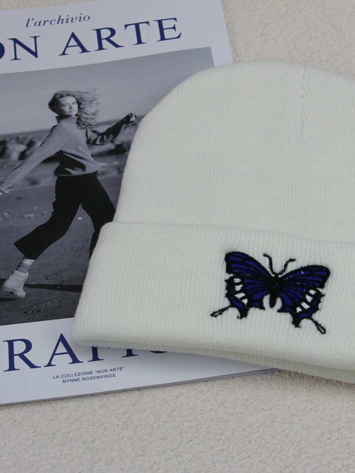 Gorro con bordado de mariposa