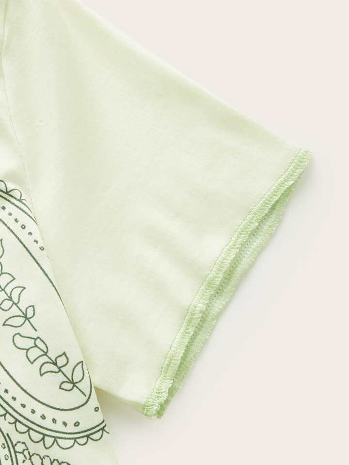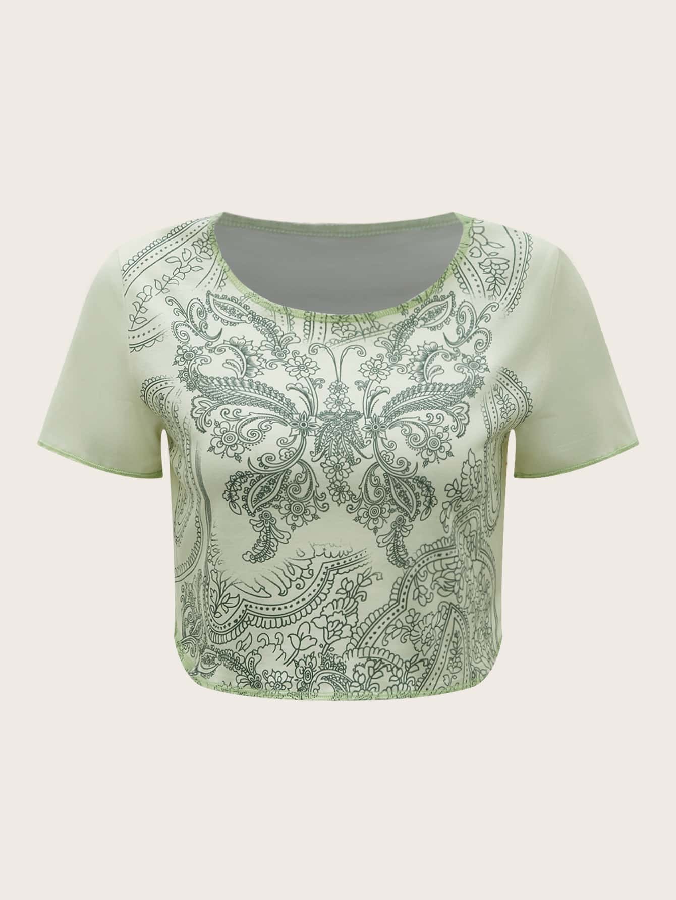 Camiseta corta con estampado floral con mariposa