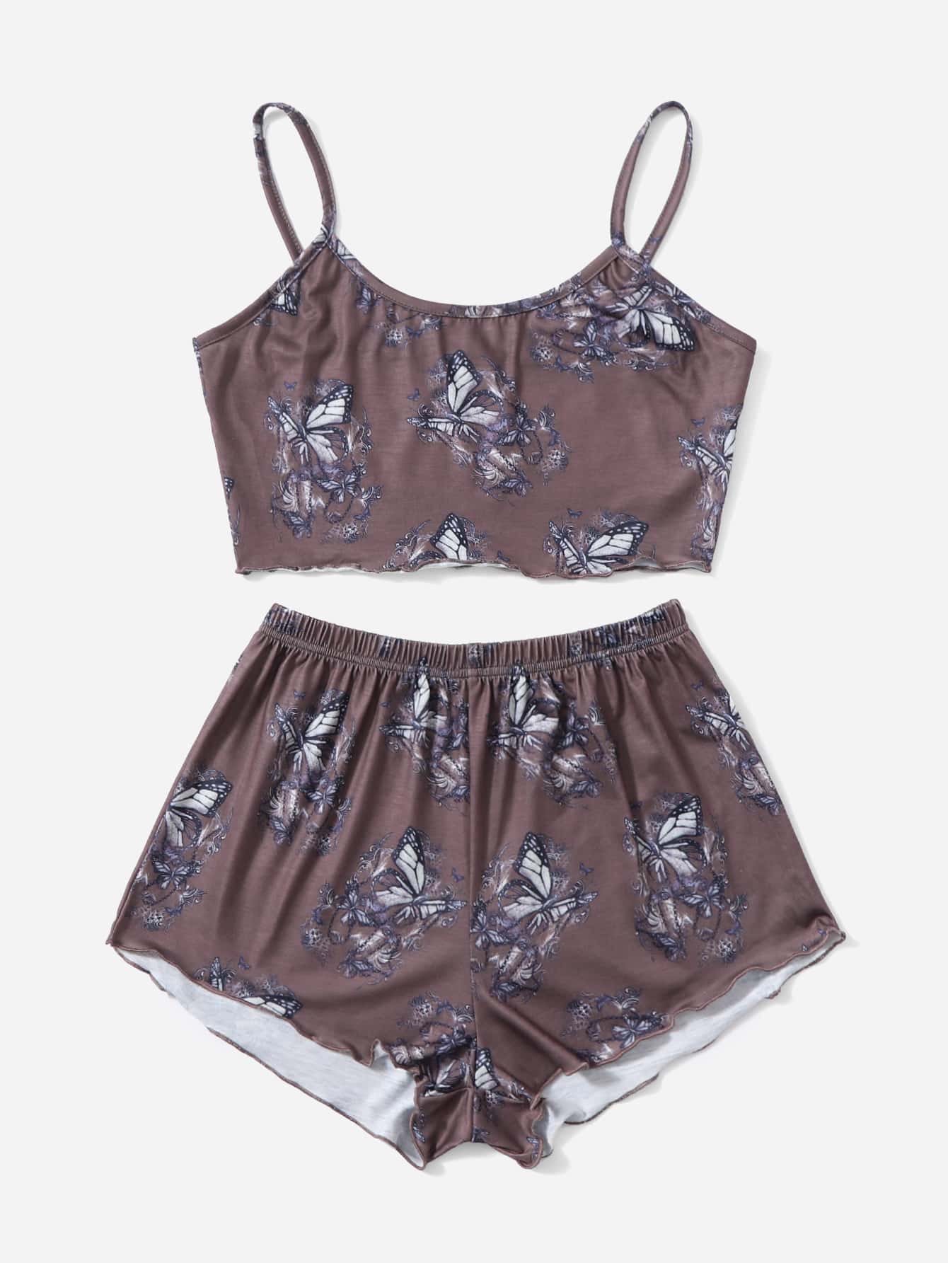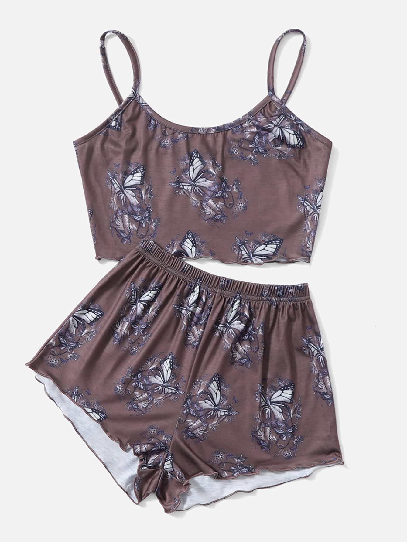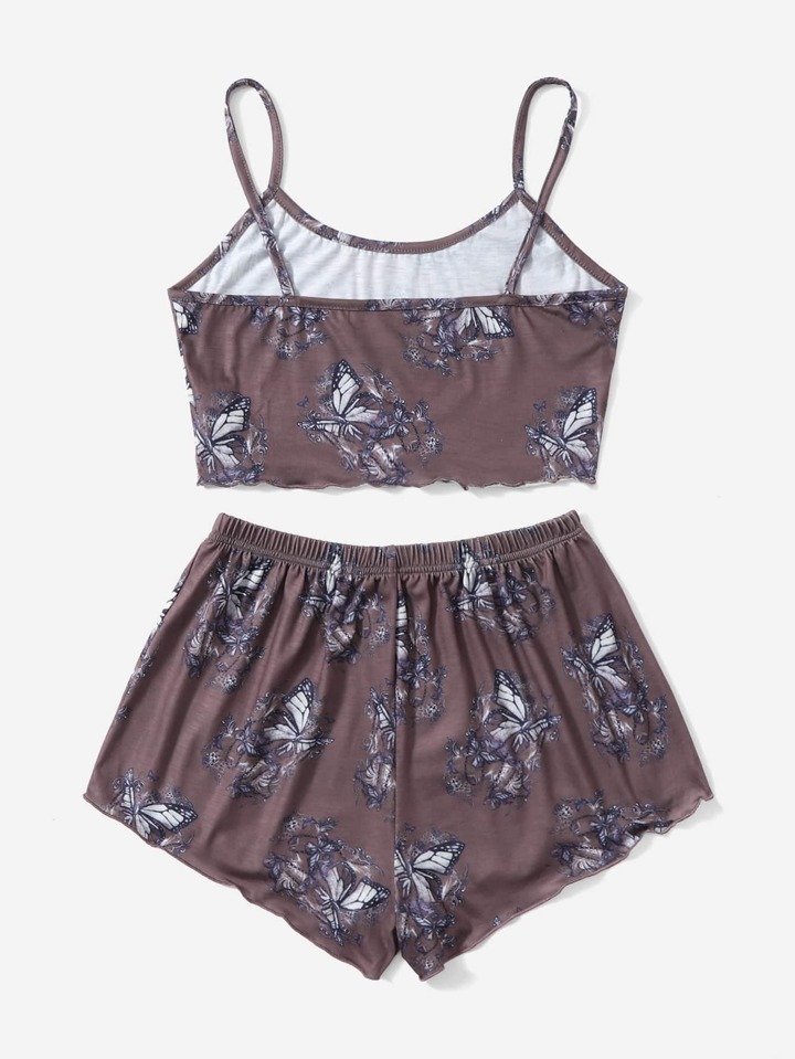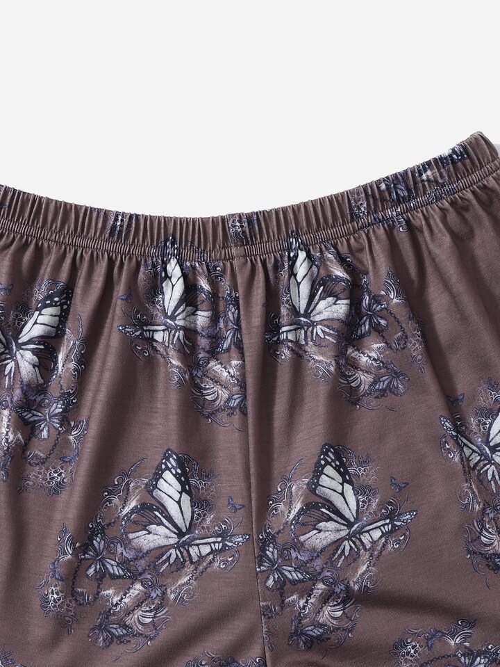 Conjunto de pijama con estampado de mariposa ribete en forma de lechuga