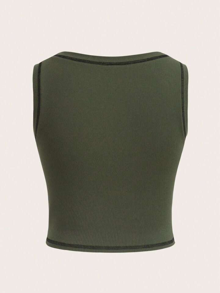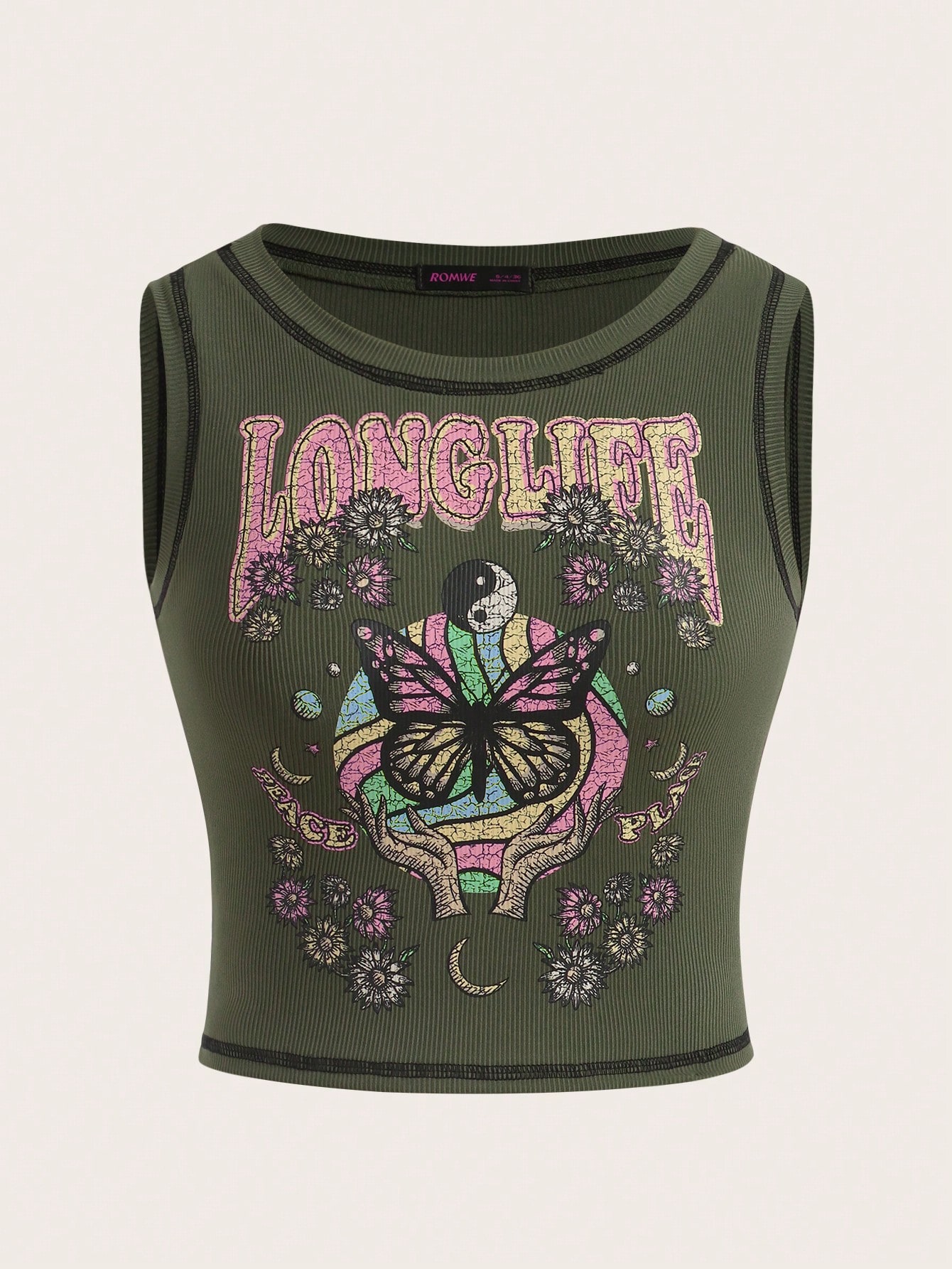 Camiseta de tirantes con gráfico de mariposa y letra con pespunte