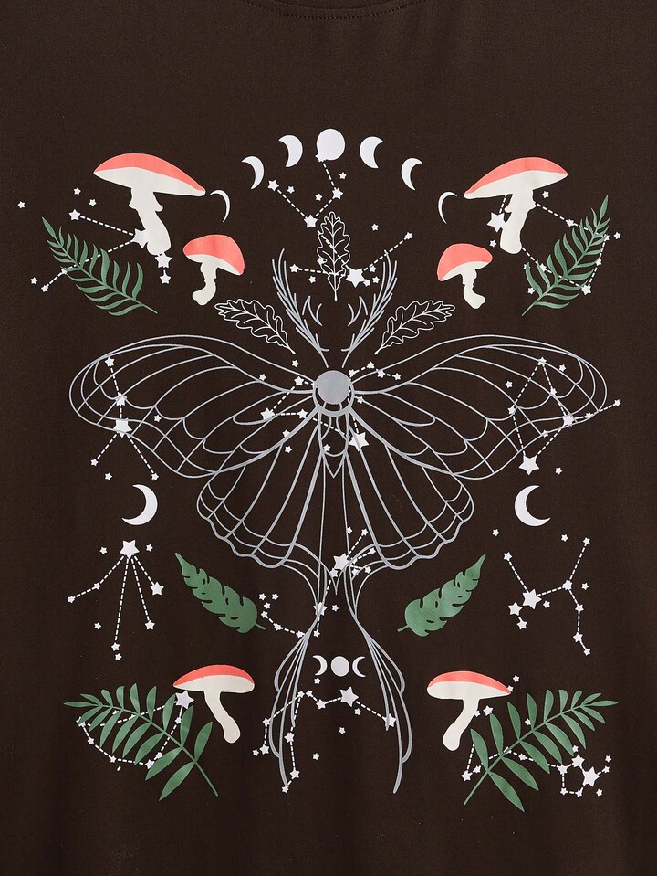 Camiseta de hombros caídos con mariposa & con estampado de seta
