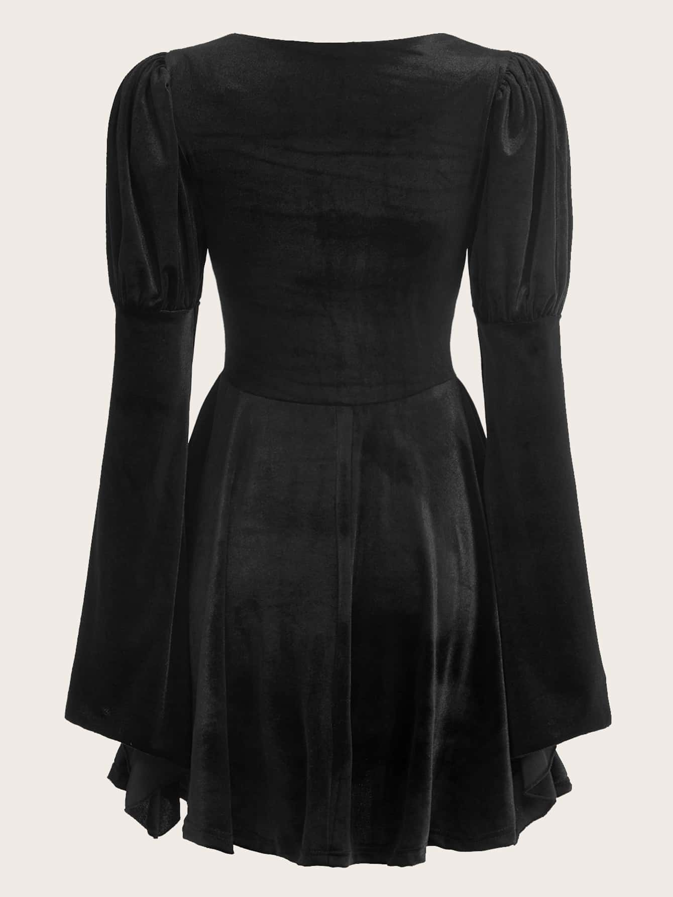 Vestido con parche de mariposa de manga gigot de terciopelo